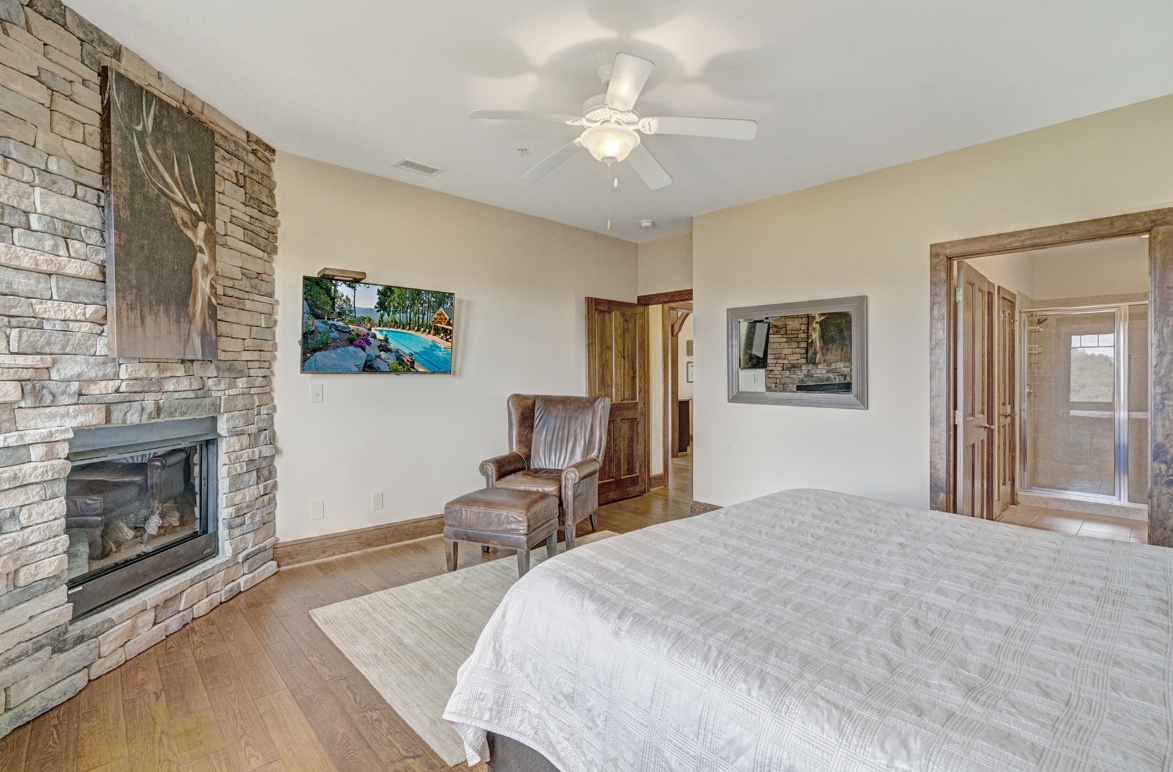 Primary Bedroom--- King Size Bed, Fireplace, TV