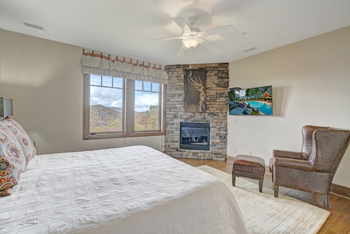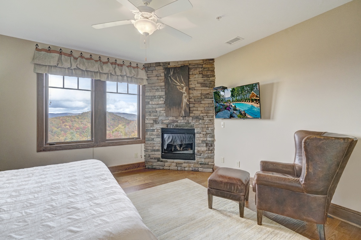 Primary Bedroom---Mountain View, Gas Log Fireplace