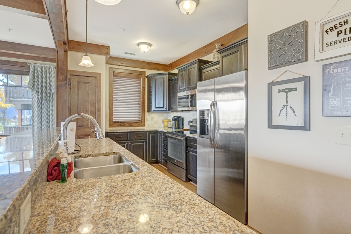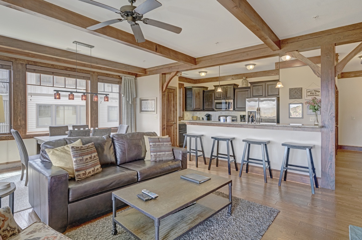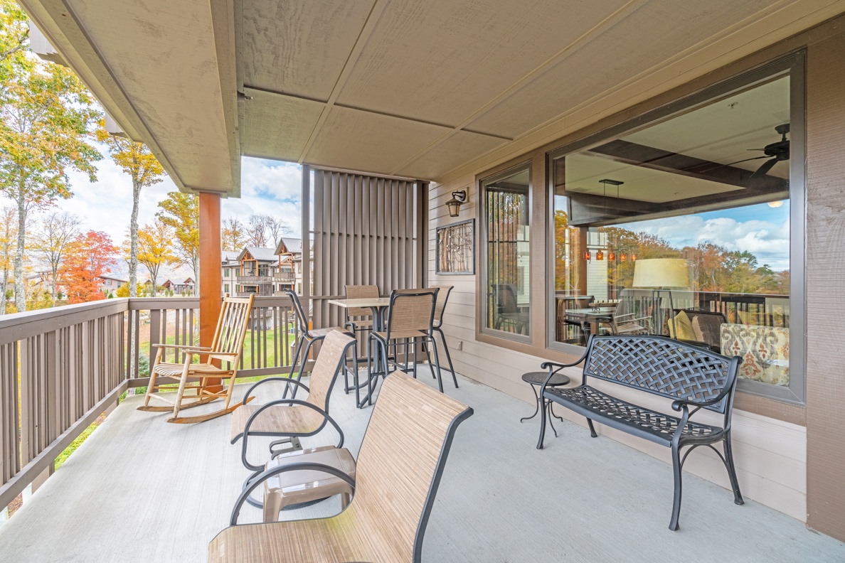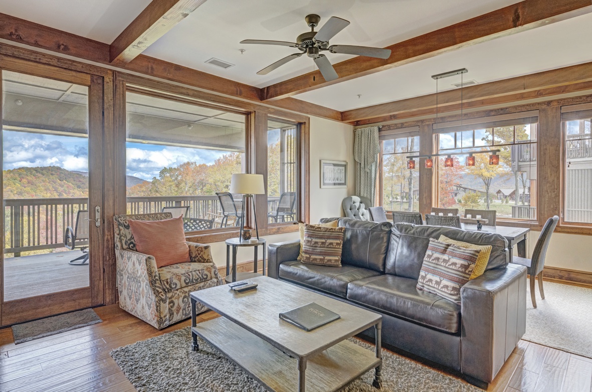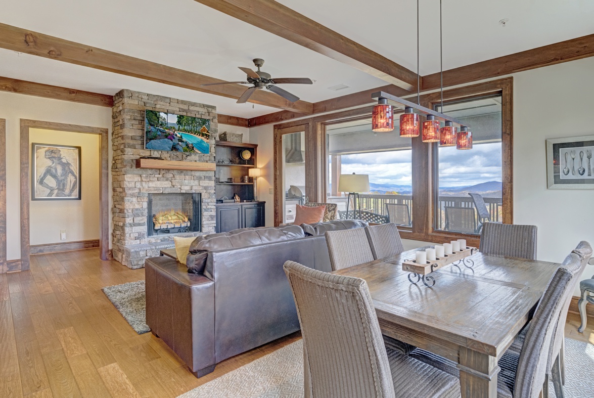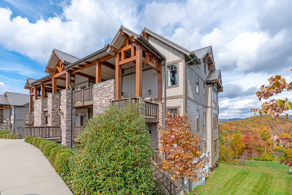 Description: Enjoy a beautiful view of mountain living from this rugged timber frame three- bedroom, three-bathroom entry-level (requiring no stairs) condo located in Chalakee, within Echota Resorts. This one-level condo features a covered front entry and rear deck with an amazing mountain view. The view can be admired from the deck or from the large picture windows in the open kitchen and living room areas. The kitchen features custom kitchen cabinetry, granite countertops, hardwood floors, and stainless-steel appliances. It is fully equipped with everything to prepare a meal inside or outside on the built-in-gas grill. The living room is cozy and inviting with a cultured stone gas fireplace, hardwood floors, comfortable furniture and a TV. The primary bedroom is spacious and inviting with a mountain view and TV. The primary bath is set up for relaxation with his and her sinks and a gorgeous tile shower. The guest rooms are spacious and beautifully decorated each with bathrooms attached. The bathrooms are upgraded with ceramic tile flooring. Stay for a weekend to relax or an extended period and enjoy all the High Country has to offer.