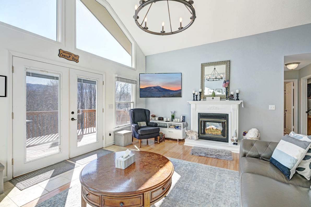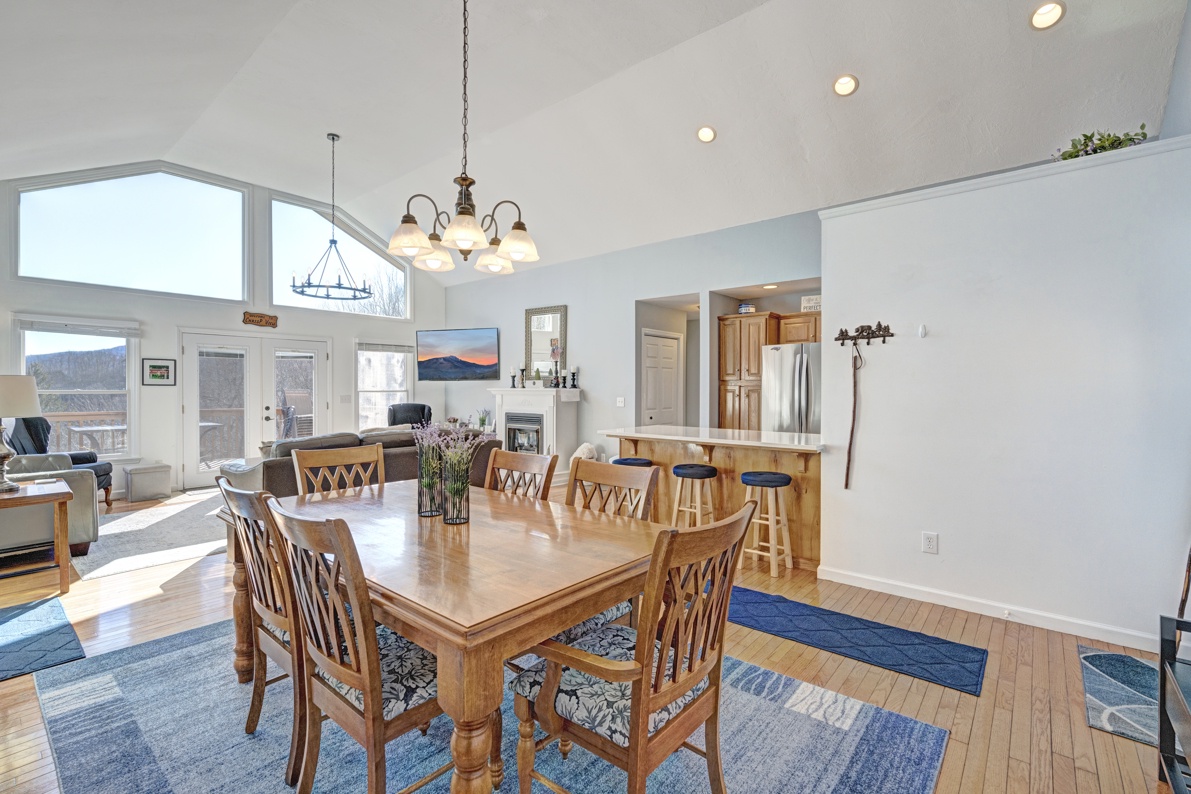 Description: Nestled high atop a mountainside at an elevation of 3650 feet, this charming house offers stunning seasonal vistas to behold. As you step inside, you're greeted by a spacious great room encompassing a living area, dining space, and open-access kitchen, ideal for gatherings of all sizes. Step out onto the outdoor deck directly from the great room, perfect for basking in the mountain scenery. For year-round comfort, central heating and air conditioning is available. Smart televisions adorn all but two bedrooms, with SKYBEST Premium TV service available for your entertainment pleasure and SKYBEST 5G fiber optic Wi-Fi service supporting your devices.The main floor boasts three cozy bedrooms, featuring a king bed in the primary suite and queen beds in each guest bedroom. The primary bathroom offers a lavish whirlpool tub and separate shower, while the guest bathroom serves the two guest bedrooms. Additionally, three personal workspaces on the main floor, each with a desk and chair, cater to your professional needs. A well-appointed open kitchen awaits, boasting tasteful finishes and updated countertops and appliances replaced in 2021. Adjacent, a conveniently located washer and dryer simplify your laundry tasks. Descending downstairs, discover a spacious family room with a sleeper sofa, smart TV, an extra bedroom with a king bed and a twin bed, and a bathroom. Families with children are warmly welcomed, with a high chair and stroller provided for your convenience, along with ample space for your pack and play. A two-car garage and ample outdoor parking await, with the driveway entrance expanded and fully replaced in 2022. Furry friends are also invited, with pet fees applicable (maximum of 2 dogs).