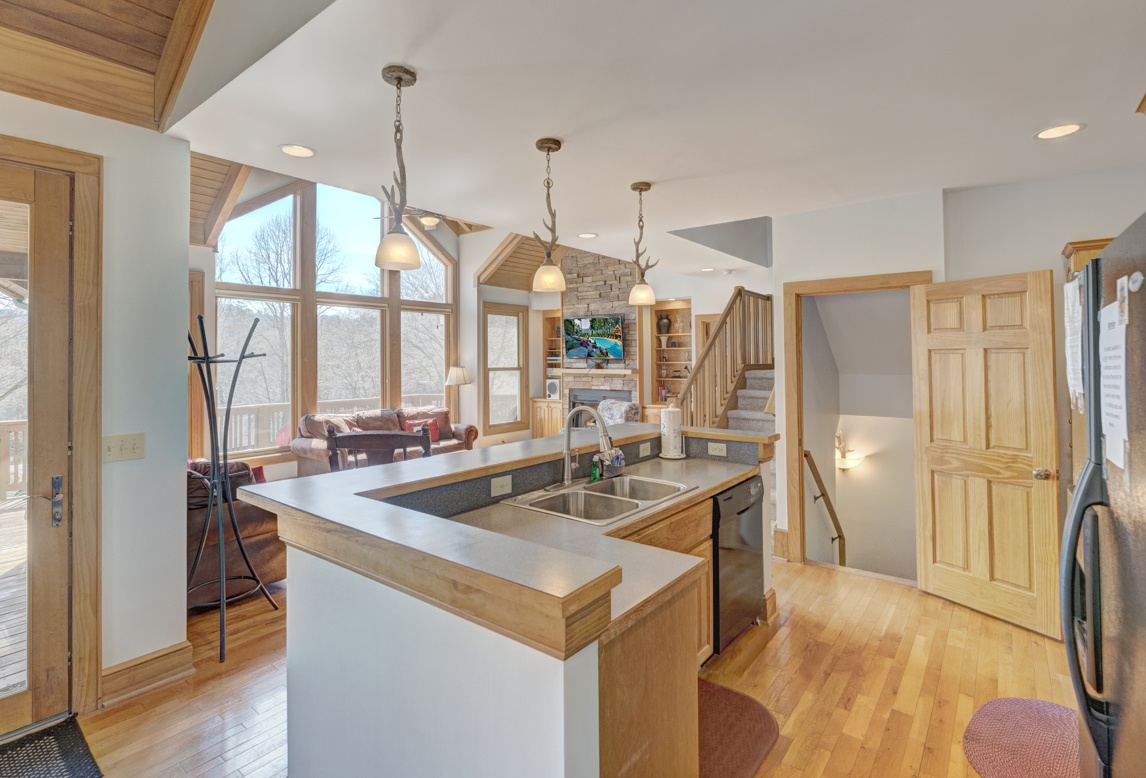 Description: Nestled in a prime location, this immaculately adorned and meticulously maintained 4-bedroom, 4-bathroom home exudes charm with its "country feel" decor and comfortably accommodates 11 guests. Across the street from the complimentary fitness room, indoor pool, whirlpool, and trout ponds (catch and release), this house is a delightful retreat.