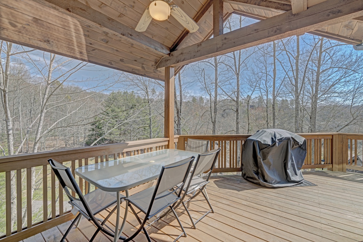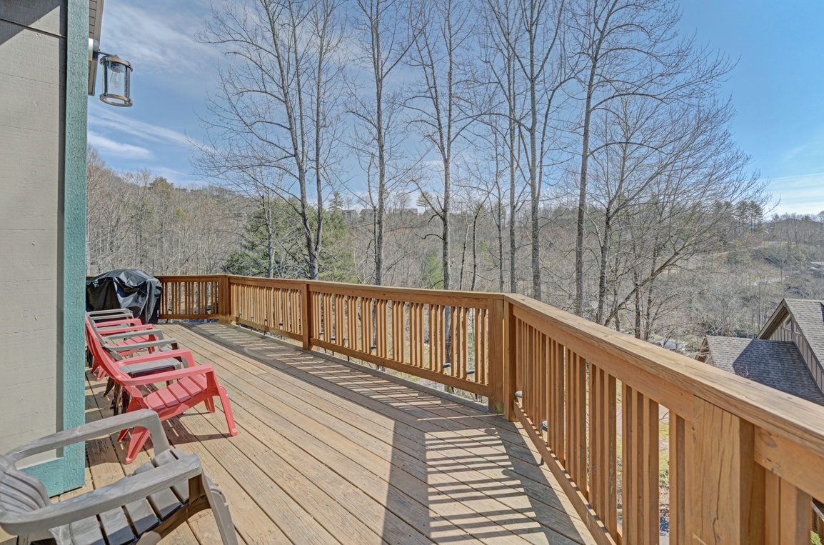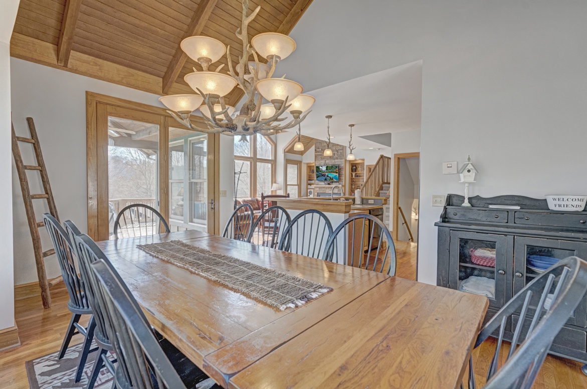 Every bedroom is equipped with a television featuring cable for entertainment. Guests can make the most of two private decks, a covered patio off the dining room, a cozy gas log fireplace and a fully-equipped kitchen with all appliances. For families with young ones, amenities include a baby gate, children's stools, and a portable high chair seat conveniently stored in an upstairs closet. This home promises a serene and enjoyable stay with its thoughtful details and ideal location.