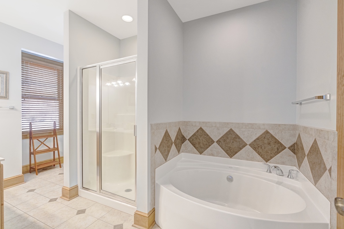 Primary Bathroom---Large Soaking Tub, Shower Stall