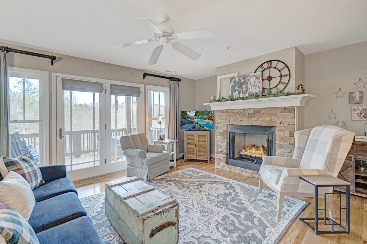 Description: Located in the beautiful development of Echota, this two-bedroom, two-bathroom downstairs condo (stair access only) condo is perfect for your next vacation. This condo is fully furnished with everything you would need for a long retreat or a short weekend getaway. The kitchen is well equipped to prepare meals and the living room is inviting with a gas log fireplace. Curl up, get cozy and read a book, watch TV or take a nap…. the choice is yours! Guests of this unit have access to the deck from the living room or primary bedroom where they can breathe in fresh mountain air while gazing at the mountains and listening to the sounds of nature. Enjoy a short mountain getaway to relax or an extended stay and explore all the High Country has to offer.