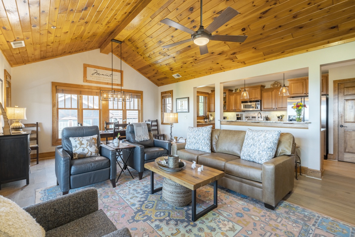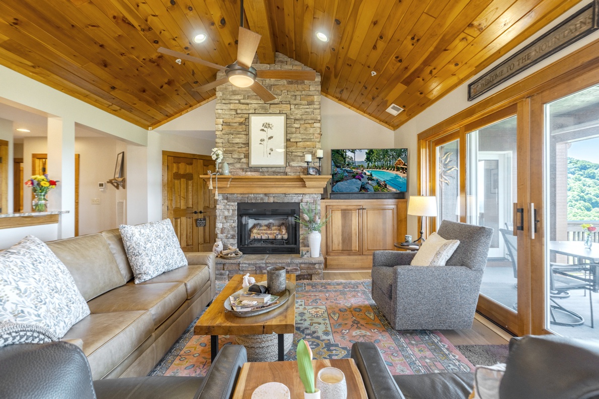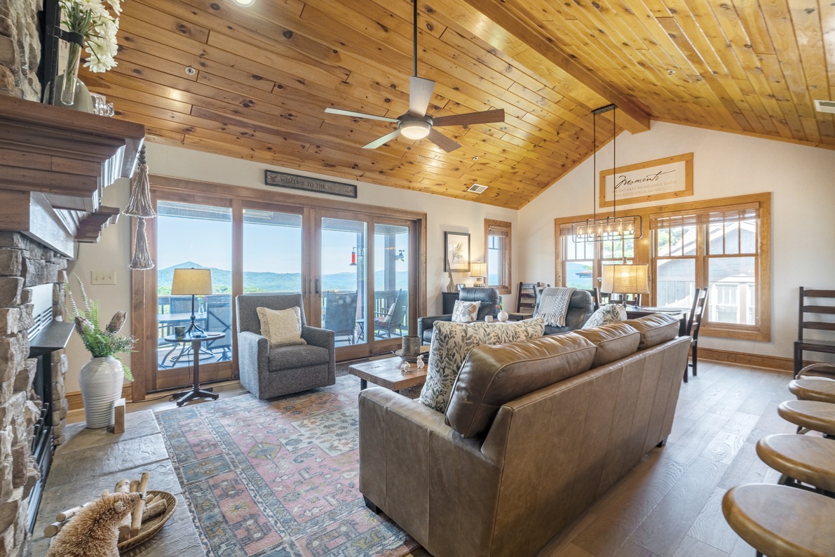 Living Room--- Mountain View, Cathedral Ceilings