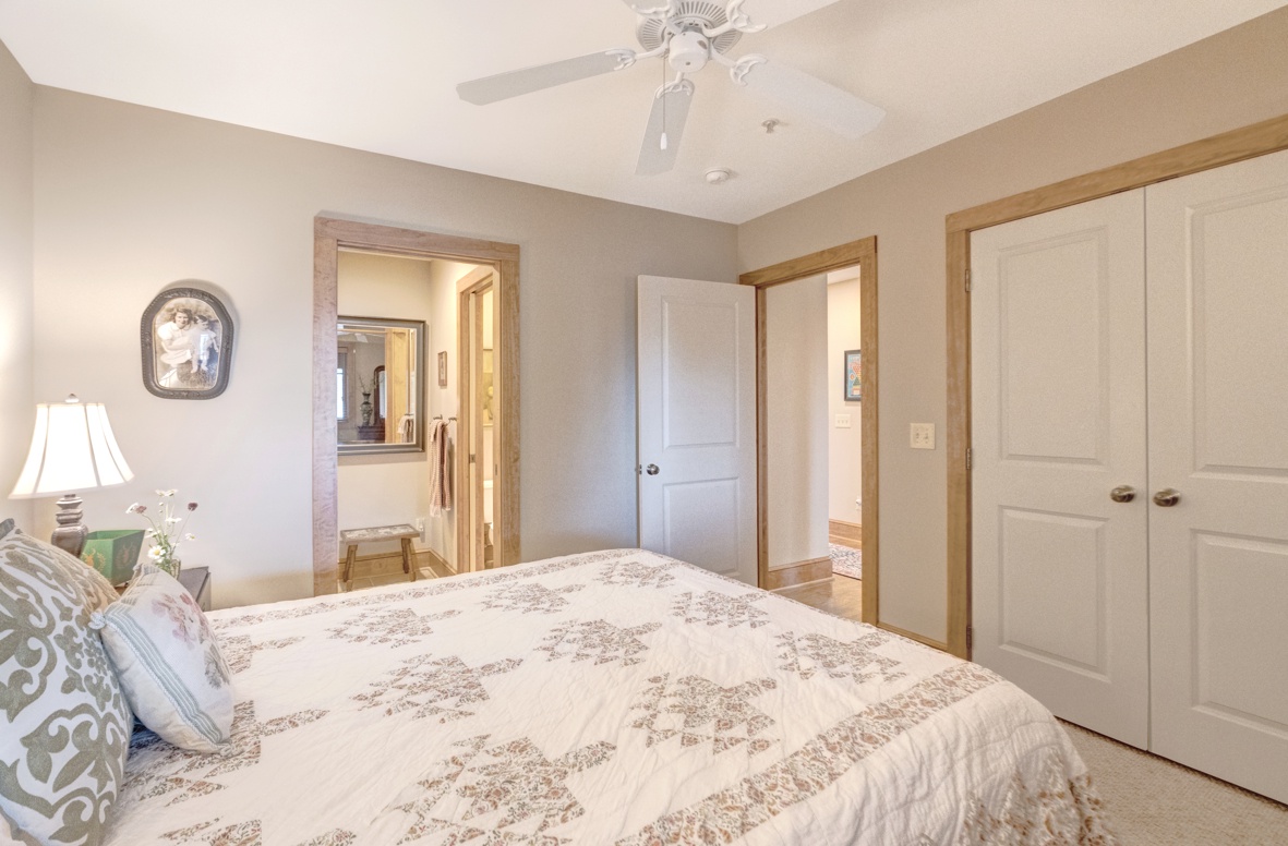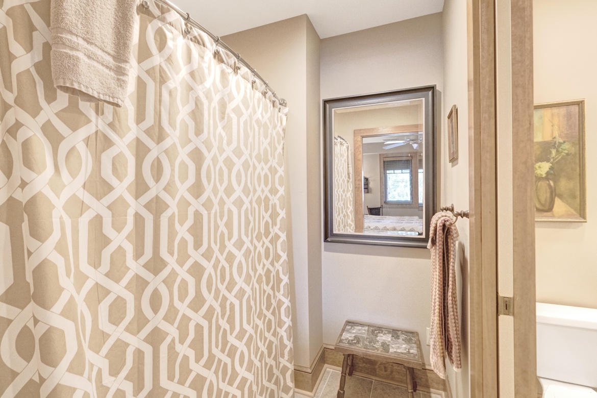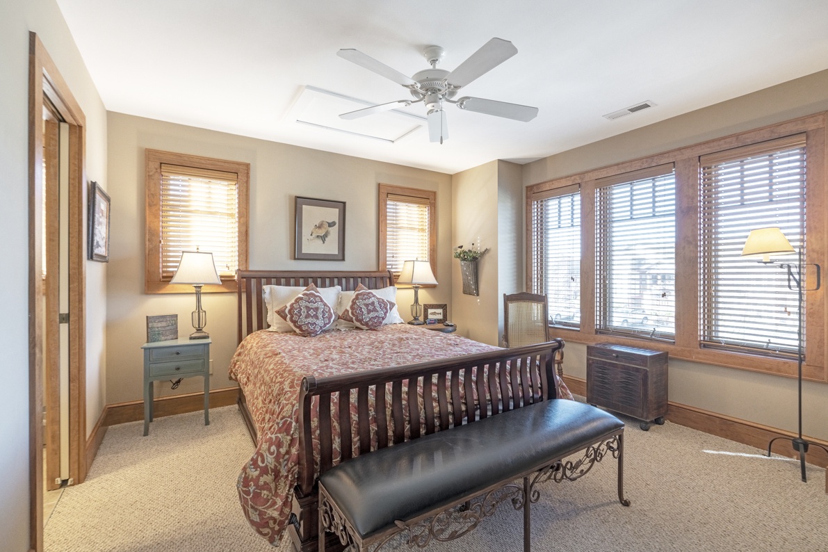 Description: The Grand Oaks floor plan features convenient single level living with 3 bedrooms and 3 bathrooms, elevator access, and a covered entry. The open floor concept has a spacious 1669 square feet with cathedral ceilings in the living and dining areas as well as the primary bedroom. Mountain views can be admired from the open kitchen, living and dining room areas as well as the primary bedroom. The kitchen boasts custom cabinetry and is equipped with everything to prepare a meal. Enjoy a meal at the dining room table, play cards or put a puzzle together. Cozy up in the living room in front of the gas log fireplace or enjoy your favorite movie. The choices are yours! The large 19 ft wide covered concrete deck is a place to gather with friends or enjoy a quiet afternoon enjoying the wonders of nature and the breathtaking mountain view. The spacious primary bedroom and bathroom suite offers a luxurious experience and access to the deck area as well as the living room. The guest bedrooms also have bathrooms offering privacy for each guest. Come for a short weekend or enjoy an extended stay and explore all the High Country has to offer. This condo is on the top floor (upstairs, no condos above) with an elevator. In case of power outages or elevator equipment malfunctions, the condo will be stair access only.