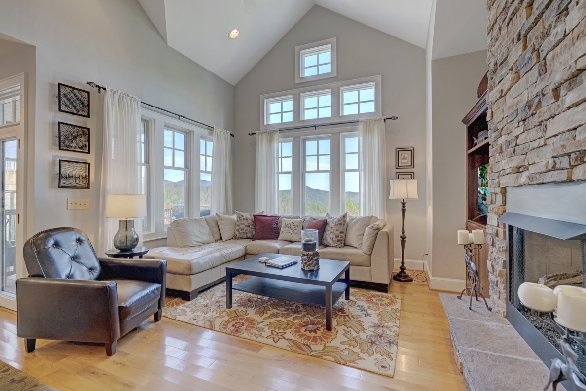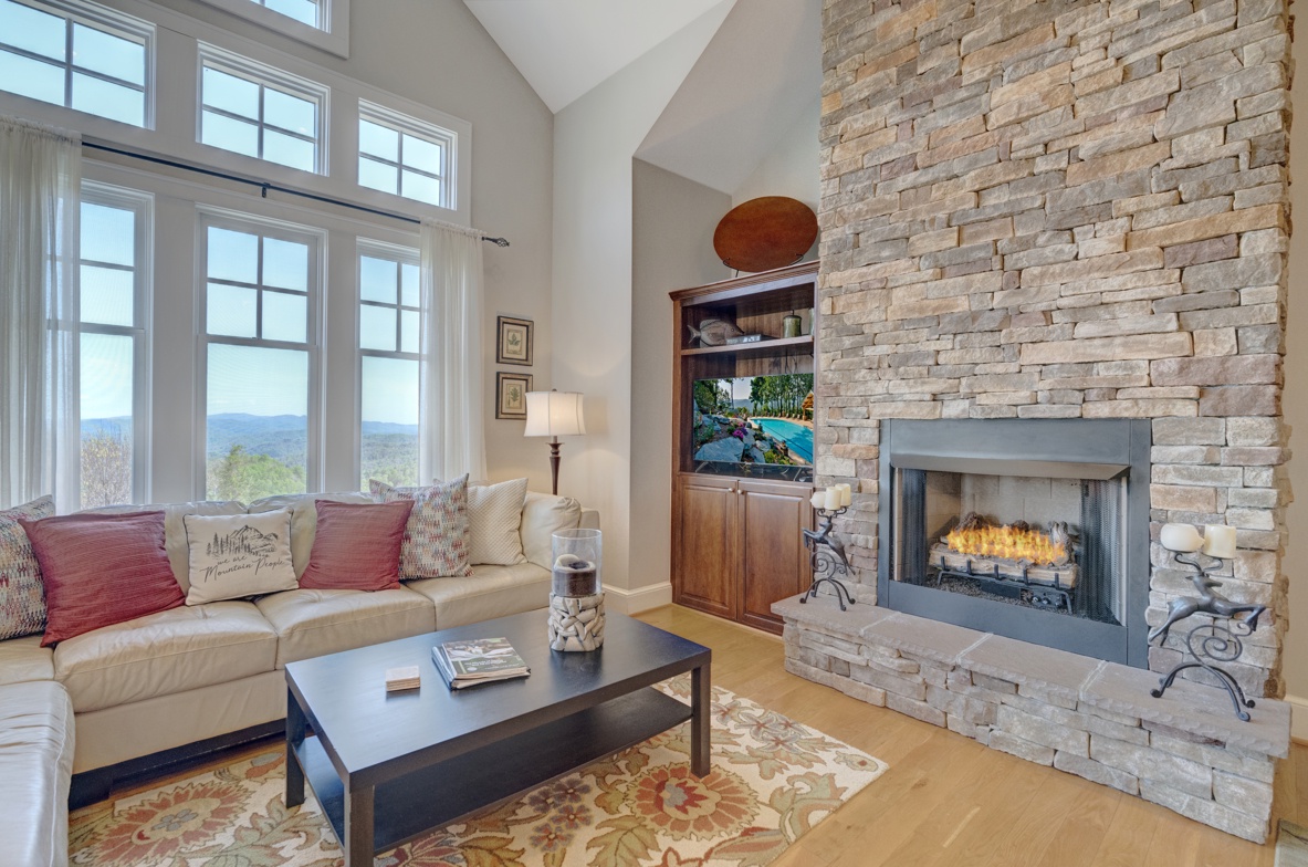 Living Room--- Cozy Fireplace, Mountain View