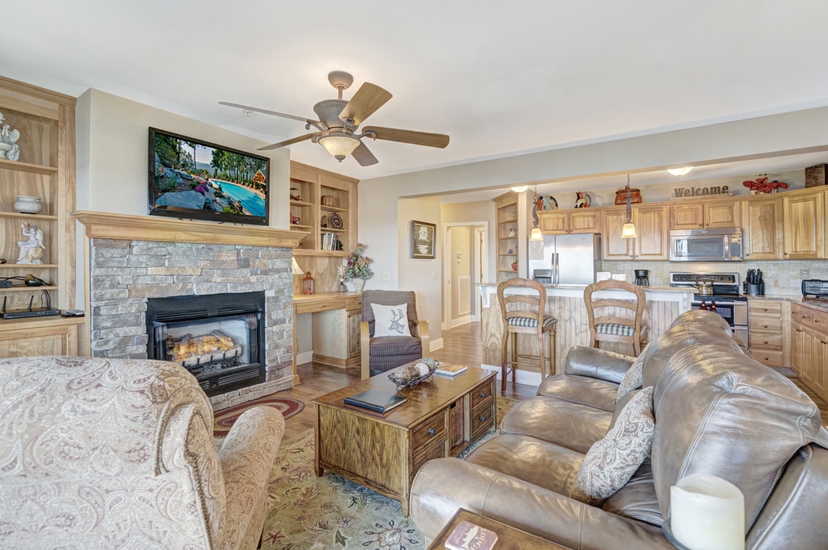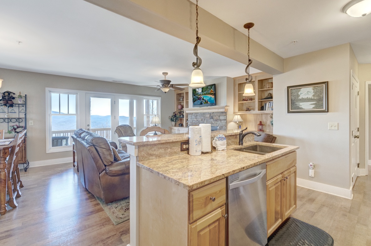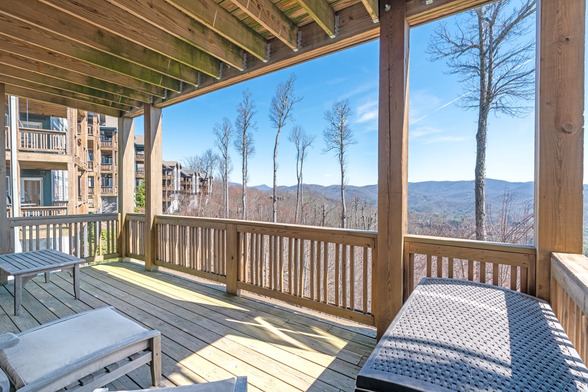 Description: Located in the beautiful development of Echota on the Ridge, this two-bedroom, two-bathroom downstairs (stair access only) condo is perfect for your next vacation. This condo is fully furnished with everything you would need for a long retreat or a short weekend getaway. The kitchen is well equipped to prepare meals and the living room is inviting with a gas log fireplace and amazing mountain views. Curl up, get cozy and read a book, watch TV or take a nap…. the choice is yours! Guests of this unit have access to the deck from the living room or primary bedroom where they can breathe in fresh mountain air while gazing at the mountains and listening to the sounds of nature. Enjoy a short mountain getaway to relax or an extended stay and explore all the High Country has to offer.