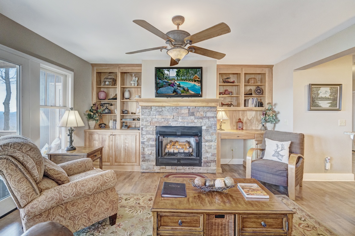 Living Room--- Cozy Fireplace, TV, Mountain View