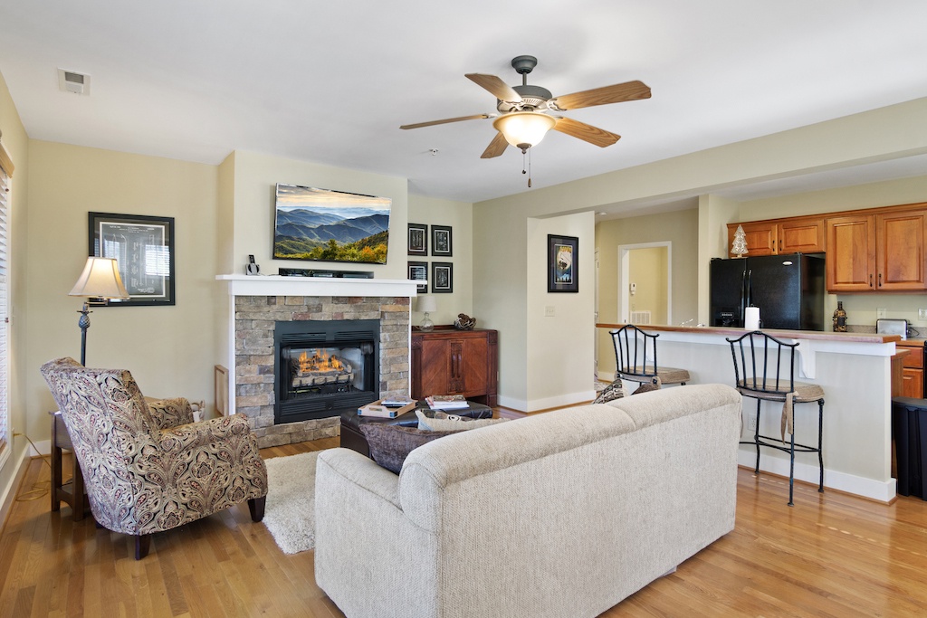 Description: Located in the beautiful development of Echota on the Ridge, this two-bedroom, two-bathroom downstairs (stair access only) condo is perfect for your next vacation. This condo is fully furnished with everything you would need for a long retreat or a short weekend getaway. The kitchen is well equipped to prepare meals and the living room is inviting with a gas log fireplace and amazing mountain views. Curl up, get cozy and read a book, watch TV or take a nap…. the choice is yours! Guests of this unit have access to the deck from the living room or primary bedroom where they can breathe in fresh mountain air while gazing at the mountains and listening to the sounds of nature. Enjoy a short mountain getaway to relax or an extended stay and explore all the High Country has to offer.