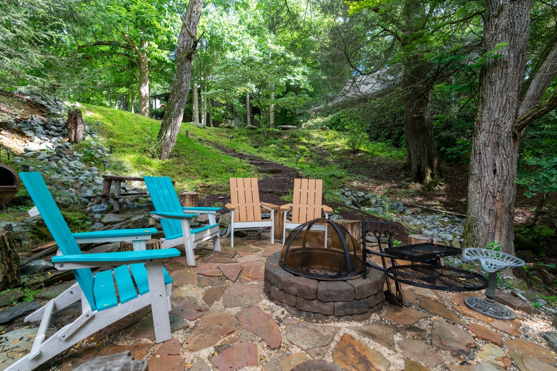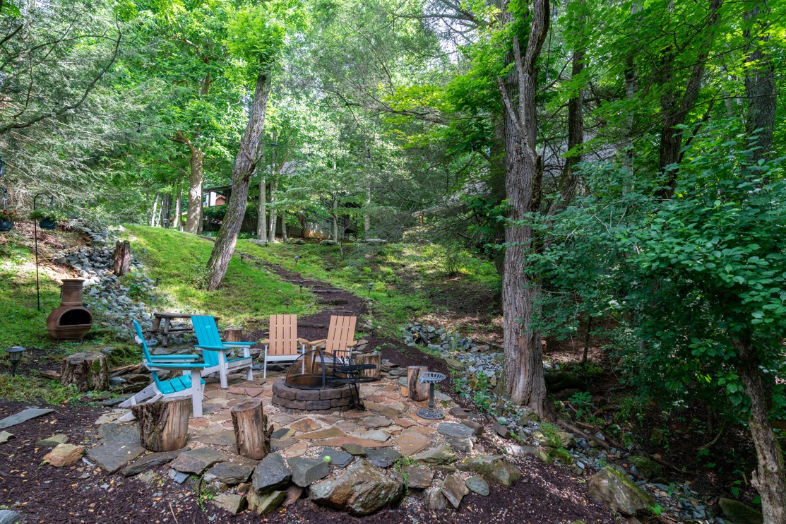 Might suggest trimming hedges in front of the porch. It's such a great view but it is obstructed by the taller hedges. However, this may be the owners preference. The only other comment is that the area around the fire pit could use a trim as well.