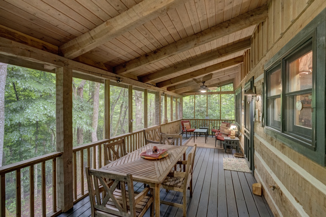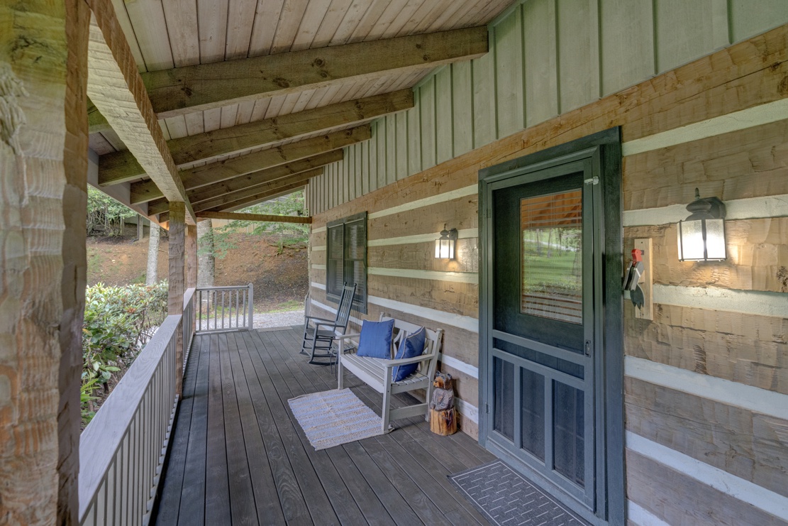 Description: Arroyito is a delightful cabin with a beautiful natural setting located near all of the high country's towns and best attractions. This log cabin will comfortably sleep up to 6 people (and your furry friend is welcome too) with two well furnished sleeping areas. Both areas have flat screen televisions and bathrooms. There is a bedroom on the main floor with a queen size bed and the loft/bedroom has a king size bed and a futon. The living room features a full floor to ceiling fireplace, comfortable furniture, and a flat screen HDTV. The kitchen is fully equipped with all accessories necessary to prepare a gourmet meal. Fresh mountain air and much relaxation can be enjoyed from the large screened in porches on the front and the back of the cabin. Enjoy making s'mores by the shared fire-pit. There are only 3 steps to get into the cabin, ample parking, charcoal grill, wireless internet, no cable but streaming services, washer and dryer, and even an I-Pod dock for your convenience. Guests of the Lakes Community have access to stocked, catch and release ponds and the Seven Devils Community playground and tennis courts. Dogs are welcome with fees (Maximum 2 dogs).
