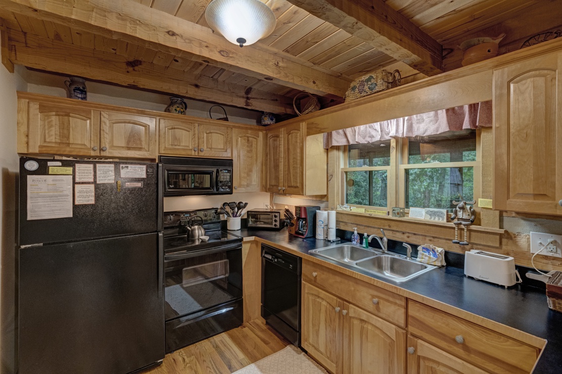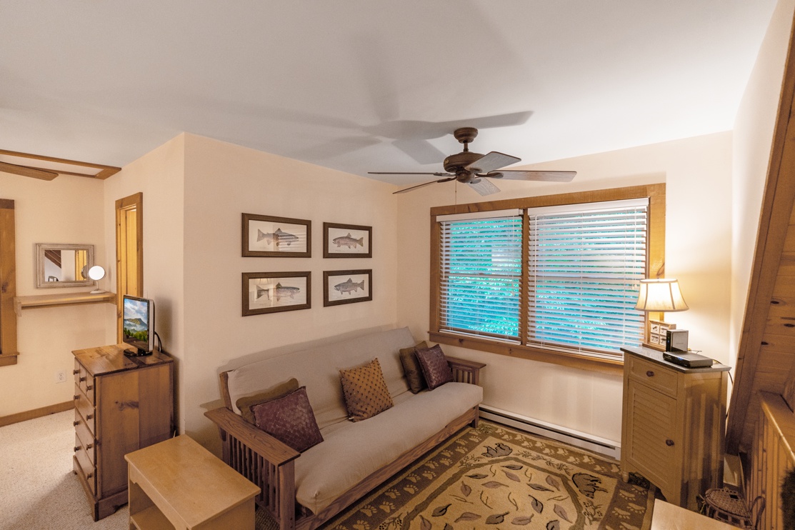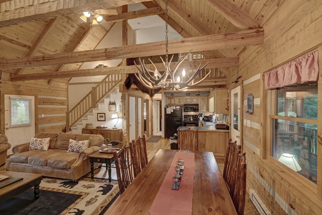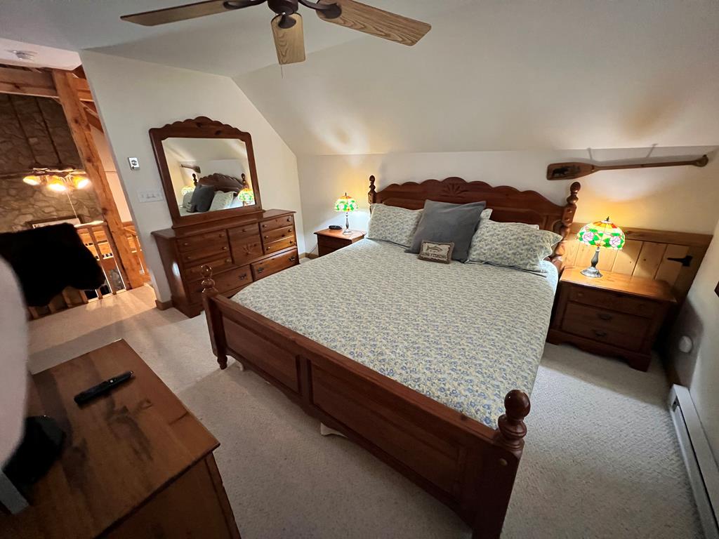 Bed Configuration: Queen (Primary Bedroom, Main Floor), King and Full Futon (Open Loft, Upstairs), Sleeps 6