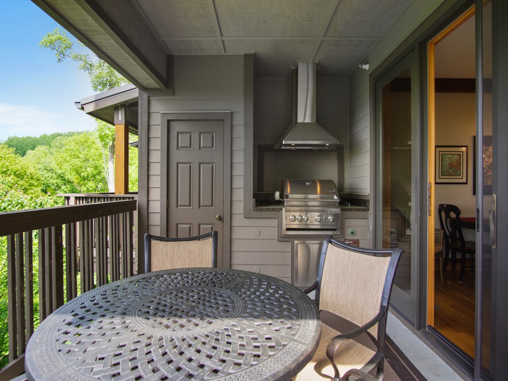 Deck Area with Built-In Grill and Grandfather Mtn