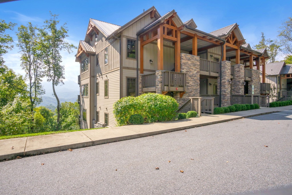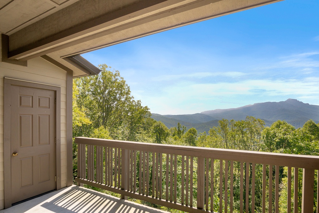 Description: Enjoy a beautiful view of mountain living from this rugged timber frame one bedroom condo located in Chalakee, within Echota Resorts. This condo features a covered front entry and rear deck with an amazing Grandfather Mountain view. The view can be admired from the deck or from the large picture windows in the open kitchen and living room areas. The kitchen features custom kitchen cabinetry, granite countertops, hardwood floors, and stainless-steel appliances. It is fully equipped with everything to prepare a meal inside or outside on the built-in-gas grill. The living room is cozy and inviting with a cultured stone gas fireplace, hardwood floors, comfortable furniture and a TV. Stay for a weekend to relax or an extended period and enjoy all the High Country has to offer. This condo is on the bottom floor (downstairs) with an elevator. In case of power outages or elevator equipment malfunctions, the condo will be stair access only.