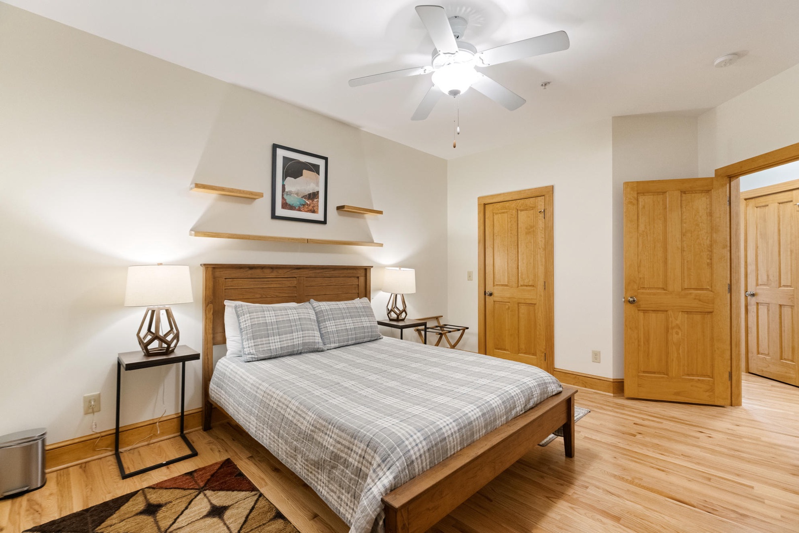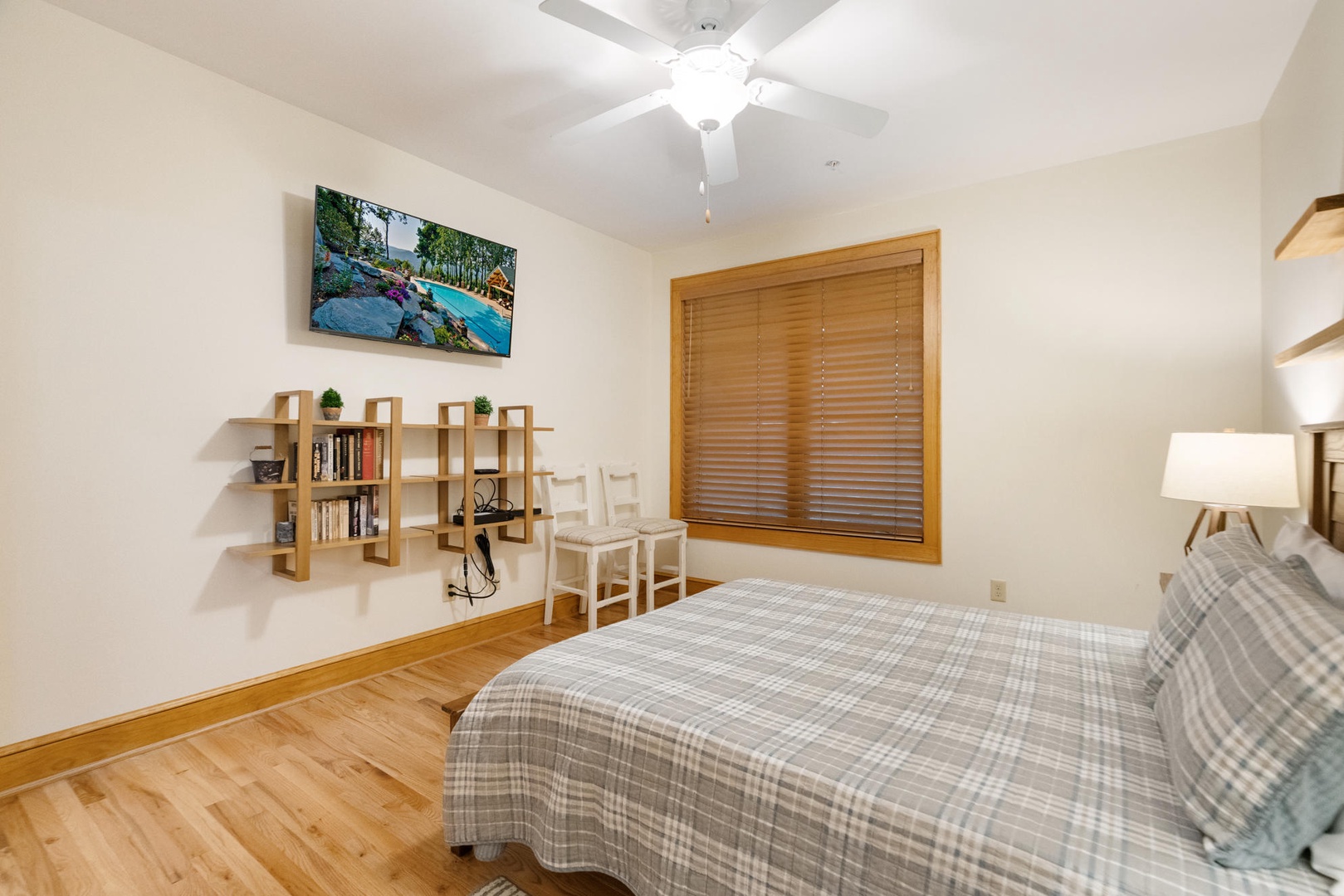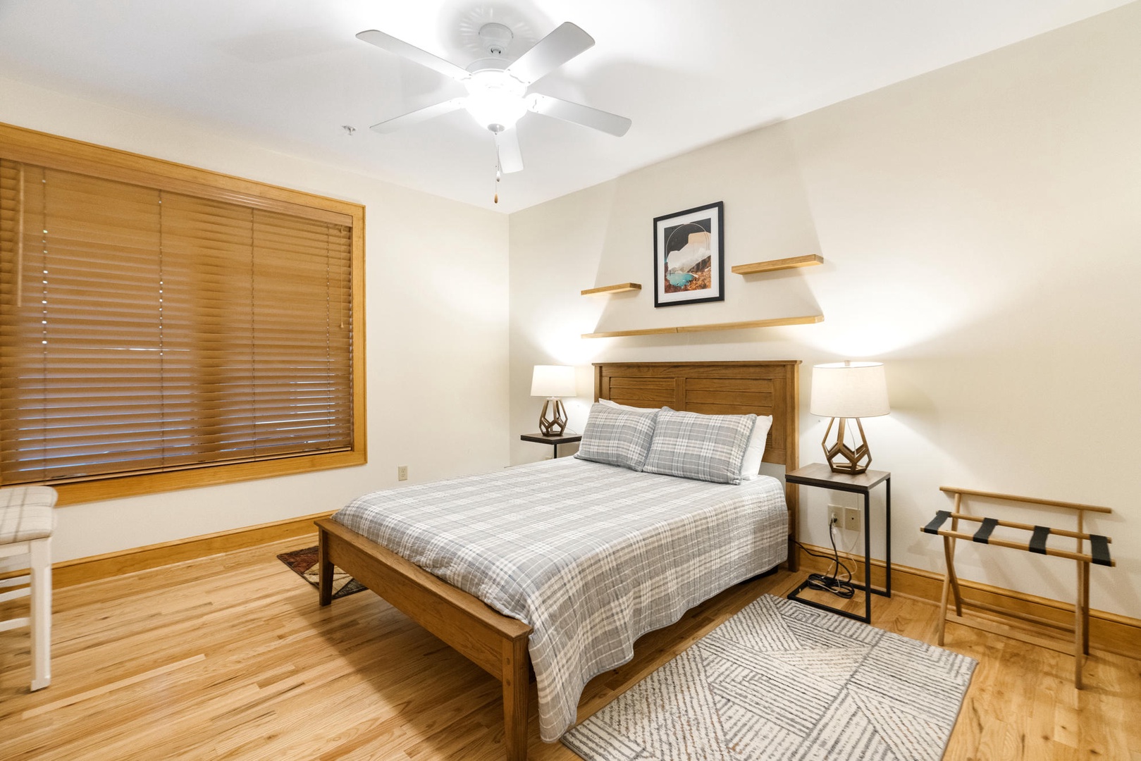 Description: Enjoy a beautiful view of mountain living from this rugged timber frame one bedroom condo located in Chalakee, within Echota Resorts. This condo features a covered front entry and rear deck with an amazing Grandfather Mountain view. The view can be admired from the deck or from the large picture windows in the open kitchen and living room areas. The kitchen features custom kitchen cabinetry, granite countertops, hardwood floors, and stainless-steel appliances. It is fully equipped with everything to prepare a meal inside or outside on the built-in-gas grill. The living room is cozy and inviting with a cultured stone gas fireplace, hardwood floors, comfortable furniture and a TV. Stay for a weekend to relax or an extended period and enjoy all the High Country has to offer. This condo is on the bottom floor (downstairs) with an elevator. In case of power outages or elevator equipment malfunctions, the condo will be stair access only.
