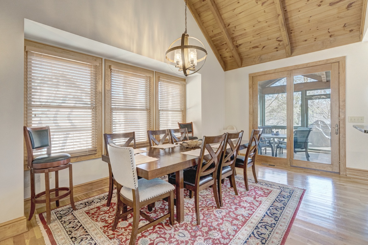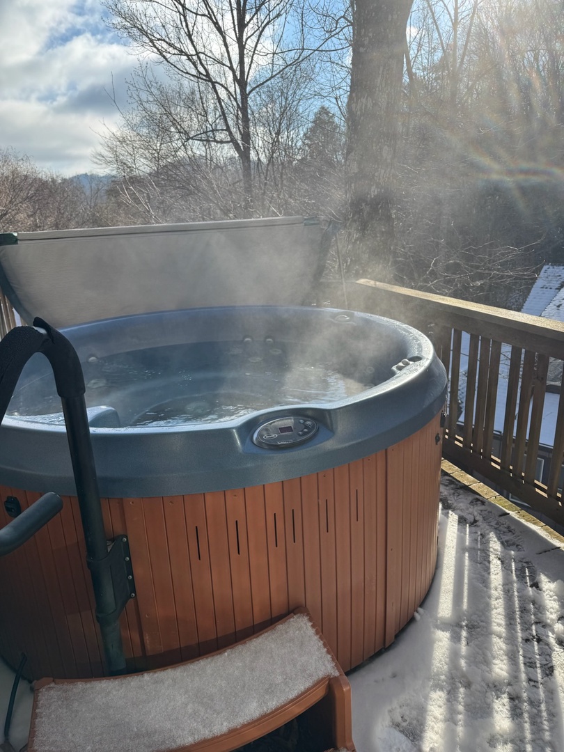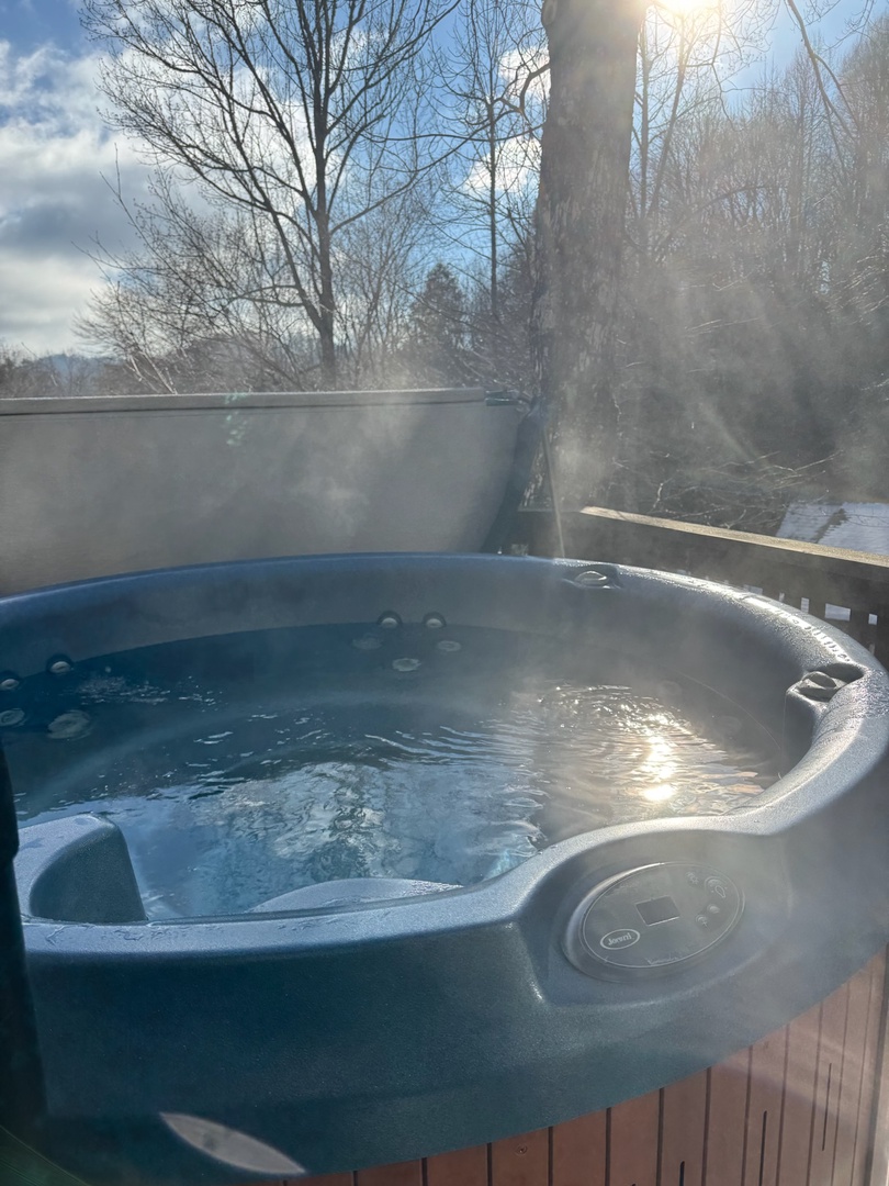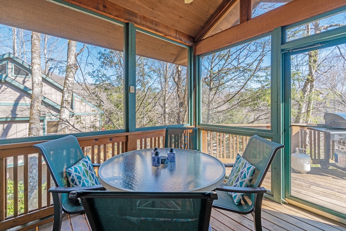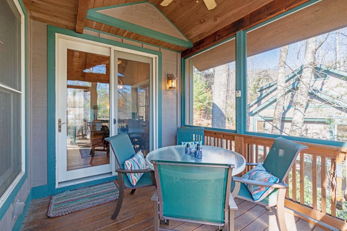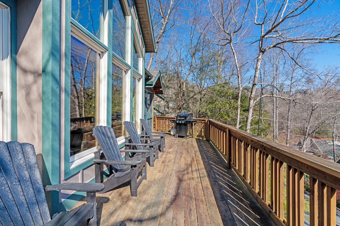 Step outside to the expansive wrap-around deck, where you can soak in the serene mountain foliage. The deck features a private hot tub, gas grill, screened-in porch, and outdoor seating, providing the perfect setting for relaxation and enjoyment. Chatham Trade is your ideal home away from home in the heart of Echota's gated community.