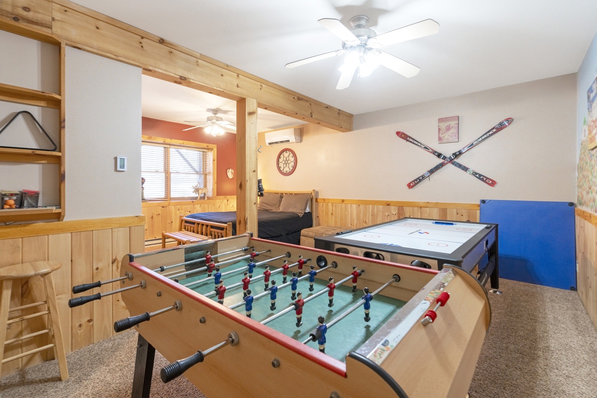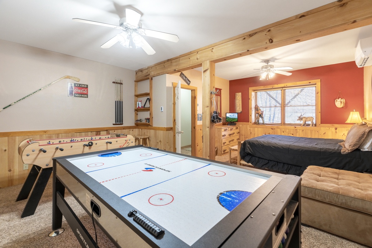 Bed Configuration: Queen (Primary Bedroom, Main Floor), King (Guest Bedroom, Upstairs), Queen (Guest Bedroom, Downstairs), Queen (Rec Room, Downstairs, Sleeps 8