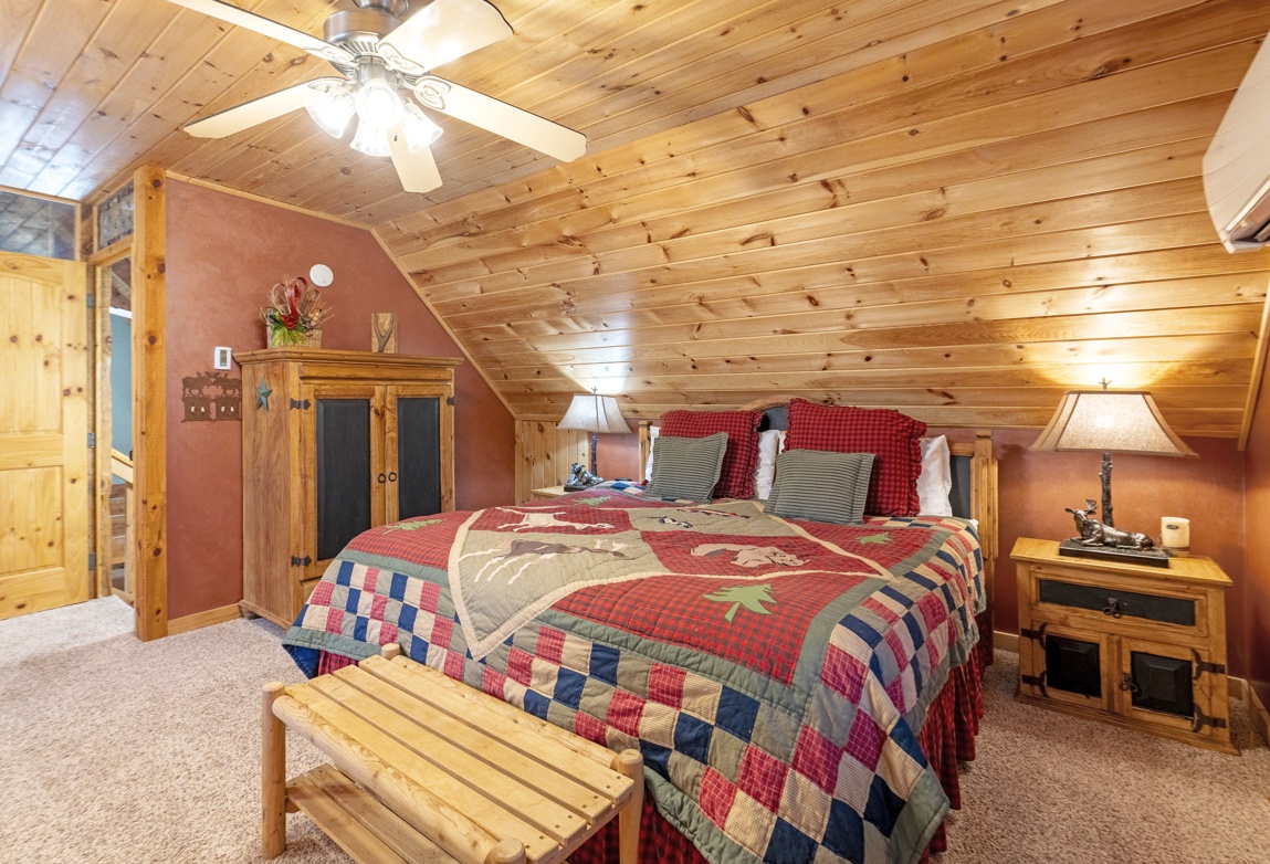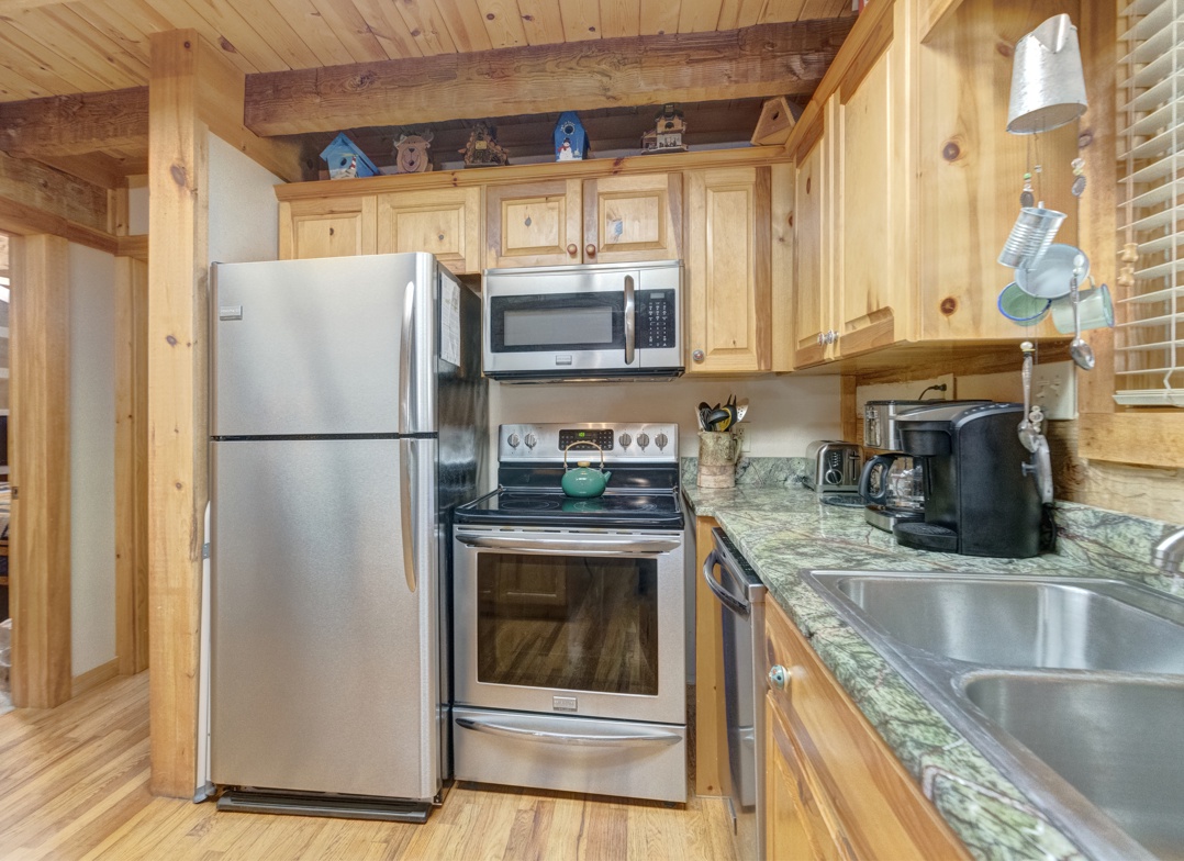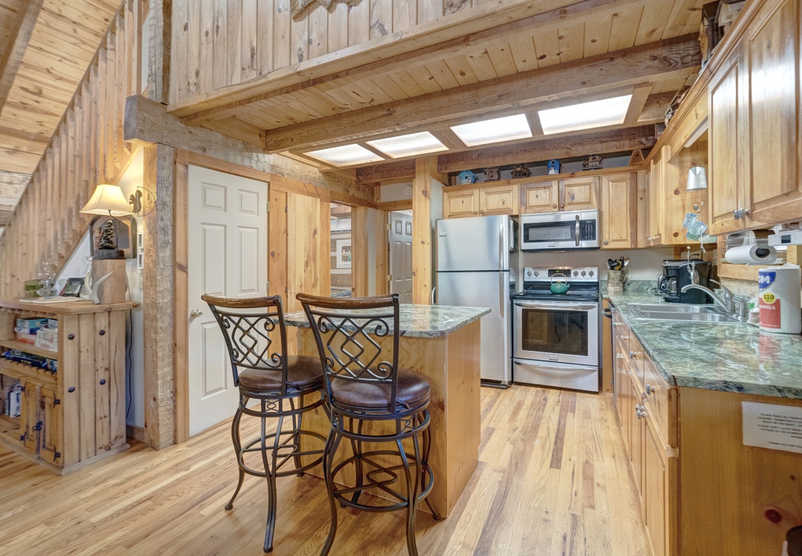 Description: Escape to the tranquil retreat of Cozy Bear Cabin, nestled approximately 4000 feet above sea level within the serene Seven Devils Lakes Community. This charming three-story log cabin exudes warmth and comfort, offering an array of amenities and delightful rustic decor that truly captures the essence of a cozy bear den. On the main floor, you'll be greeted by an inviting open-plan layout with vaulted ceilings, a striking stone wood-burning fireplace, and a 55-inch flat-screen HDTV complete with DVR and DVD player. The fully equipped kitchen boasts rainforest marble countertops and brand-new stainless-steel appliances. A bedroom featuring a queen-size bed, flat-screen TV, DVD player, and office nook, along with a full bath showcasing a level-entry rain shower, copper sink, and rainforest marble countertops, provides utmost convenience. Step outside onto the expansive covered balcony to discover a hot tub, gas grill, and a comfortable sitting area where you can unwind and plan your day. Ascend to the enclosed loft, serving as the primary suite, where a king-size bed, full bath, flat-screen cable TV with DVD player, and breathtaking views of the lake (lake not available to guests) and surrounding mountains await. The lower level offers additional comforts, including a full bathroom, laundry room, a bedroom with a queen-size bed and flat-screen cable TV, and a recreational haven. The rec room features a queen-size bed, cable TV with DVD player, PlayStation 2, and various game tables including pool, ping pong, air hockey, and foosball. Outside, the lower-level deck beckons with a wooden porch swing, perfect for soaking in the mountain air and admiring the serene lake view, with the possibility of catching sight of a deer taking a morning drink. For a taste of local delights, indulge in wine and cheese tasting beside the Watauga River at Grandfather Vineyard and Winery, located at the base of the mountain just 1.5 miles away. Outdoor enthusiasts will delight in the plethora of activities available year-round, from hiking and fly fishing to simply unwinding on the deck with a good book. Cozy Bear Cabin welcomes your furry companions (maximum of 2 dogs) with applicable pet fees. Come experience the charm and comfort of Cozy Bear Cabin, where every season offers something special for everyone to enjoy. Your perfect mountain retreat awaits!