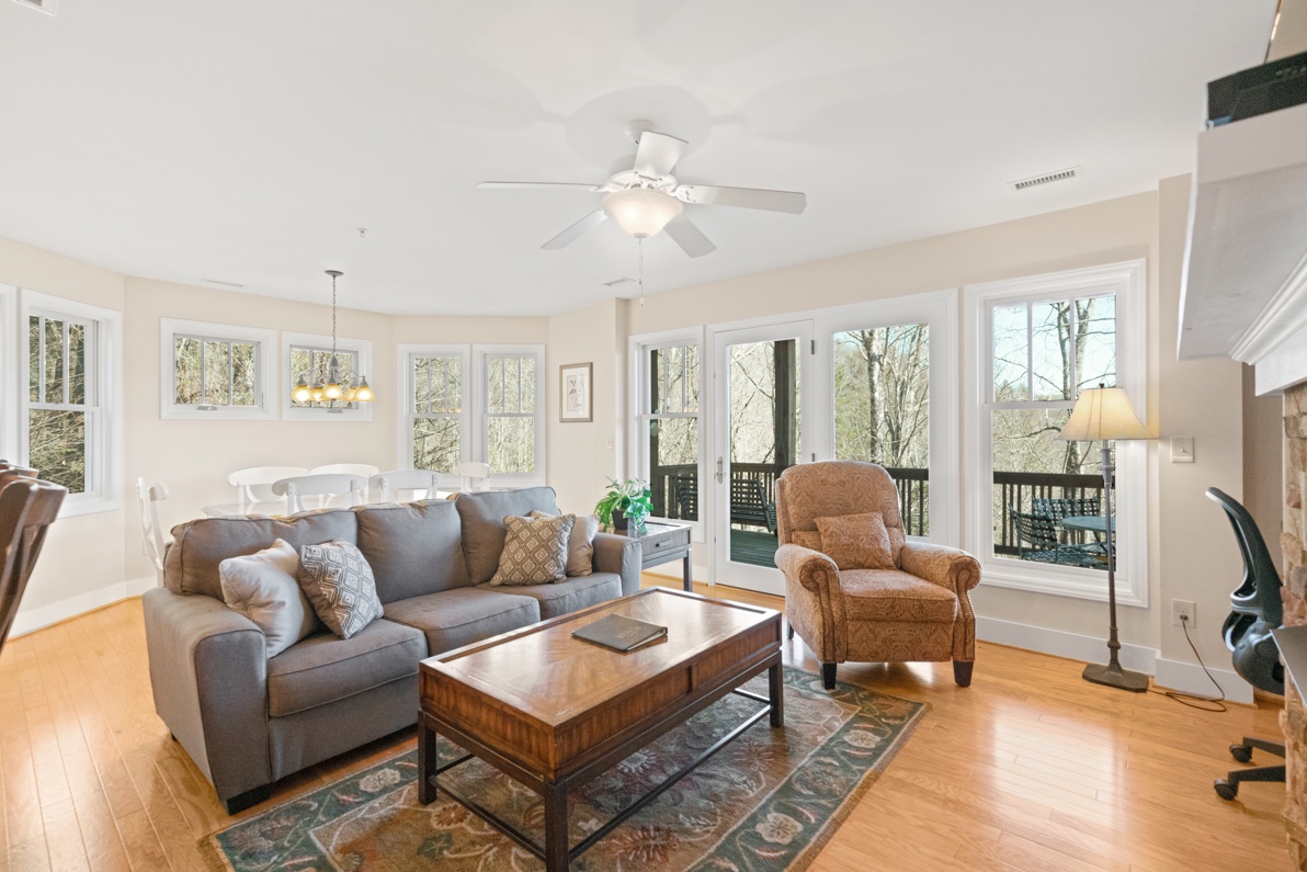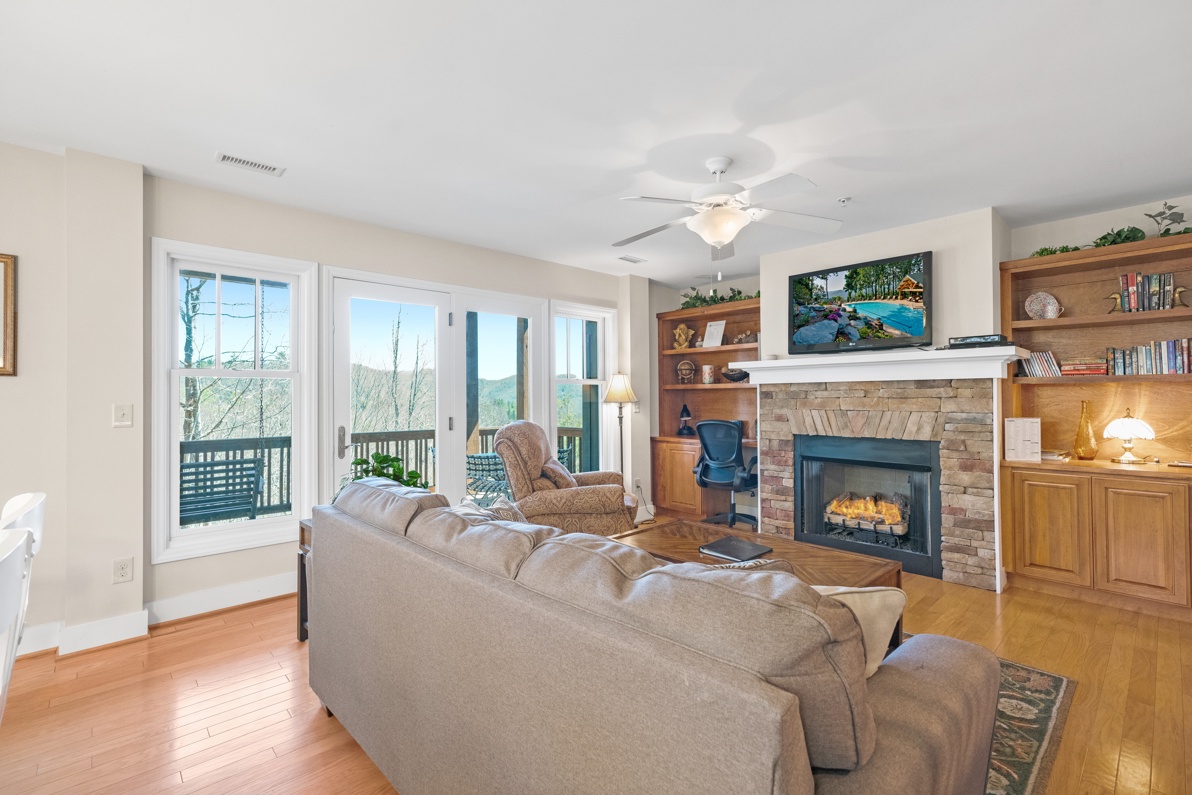 Description: Located in the beautiful development of Echota, this two-bedroom, two-bathroom main floor (entry level, no stairs) condo is perfect for your next vacation. This condo is fully furnished with everything you would need for a long retreat or a short weekend getaway. The kitchen is well equipped to prepare meals and the living room is inviting with a gas log fireplace. Curl up, get cozy and read a book, watch TV or take a nap…. the choice is yours! Guests of this unit have access to the deck from the living room or primary bedroom where they can breathe in fresh mountain air while gazing at the mountains and listening to the sounds of nature. Enjoy a short mountain getaway to relax or an extended stay and explore all the High Country has to offer.