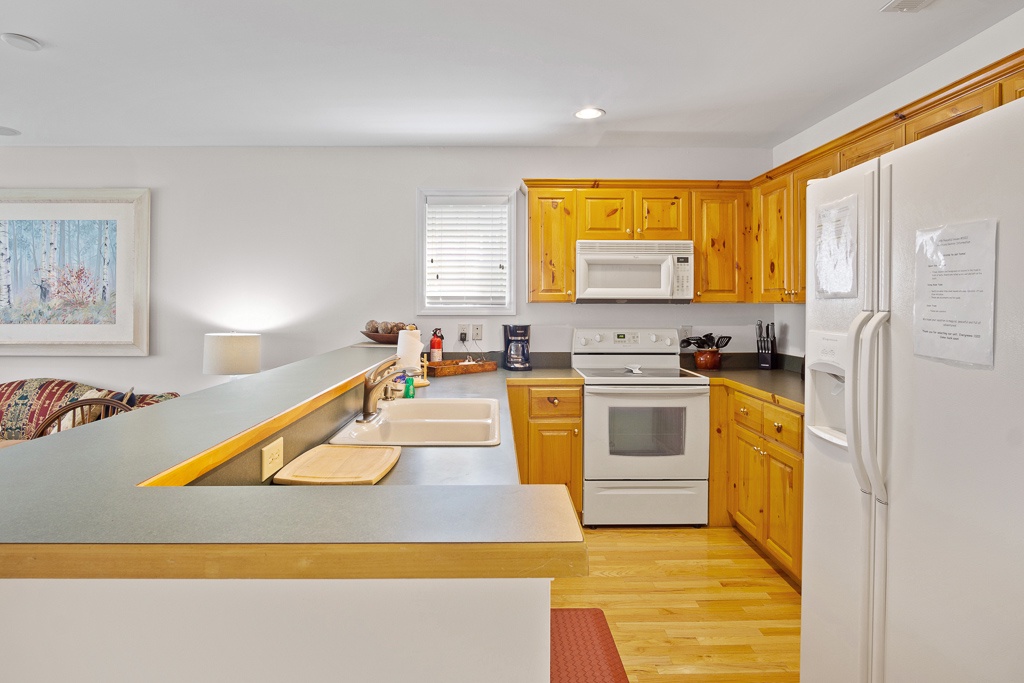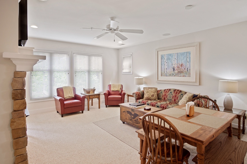 Description: Located in the beautiful development of Echota, this two-bedroom, two-bathroom main floor (entry level, no stairs) condo is perfect for your next vacation. This condo is fully furnished with everything you would need for a long retreat or a short weekend getaway. The kitchen is well equipped to prepare meals and the living room is inviting with a gas log fireplace. Curl up, get cozy and read a book, watch TV or take a nap…. the choice is yours! Guests of this unit have access to the deck from the living room or primary bedroom where they can breathe in fresh mountain air while gazing at the mountains and listening to the sounds of nature. Enjoy a short mountain getaway to relax or an extended stay and explore all the High Country has to offer.