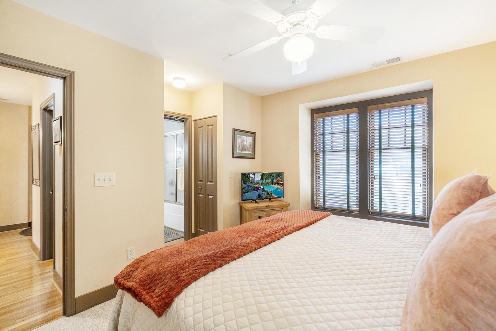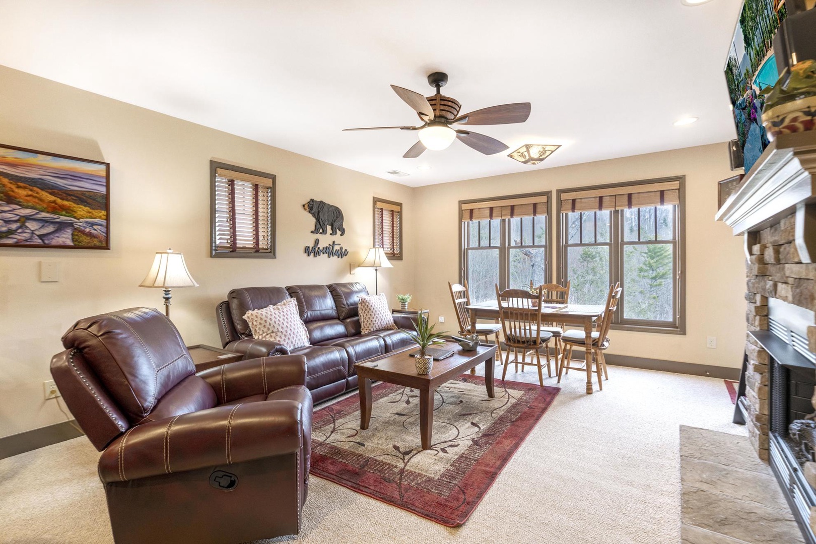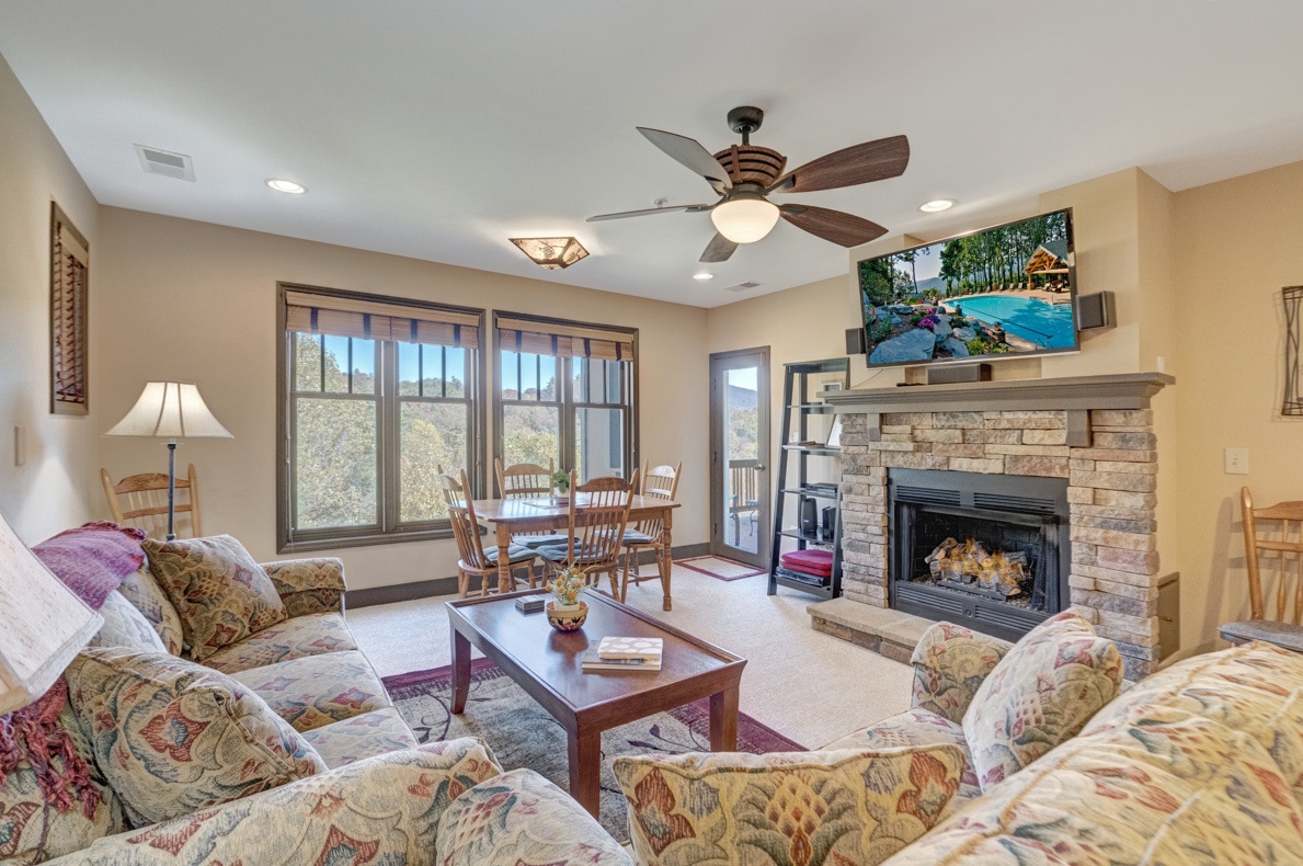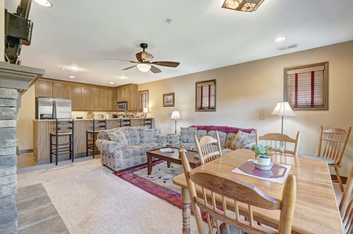 Description: Located in the beautiful development of Echota, this two-bedroom, two-bathroom main floor (entry level, no stairs) condo is perfect for your next vacation. This condo is fully furnished with everything you would need for a long retreat or a short weekend getaway. The kitchen is well equipped to prepare meals and the living room is inviting with a gas log fireplace. Curl up, get cozy and read a book, watch TV or take a nap…. the choice is yours! Guests of this unit have access to the deck from the living room or primary bedroom where they can breathe in fresh mountain air while gazing at the mountains and listening to the sounds of nature. Enjoy a short mountain getaway to relax or an extended stay and explore all the High Country has to offer.
