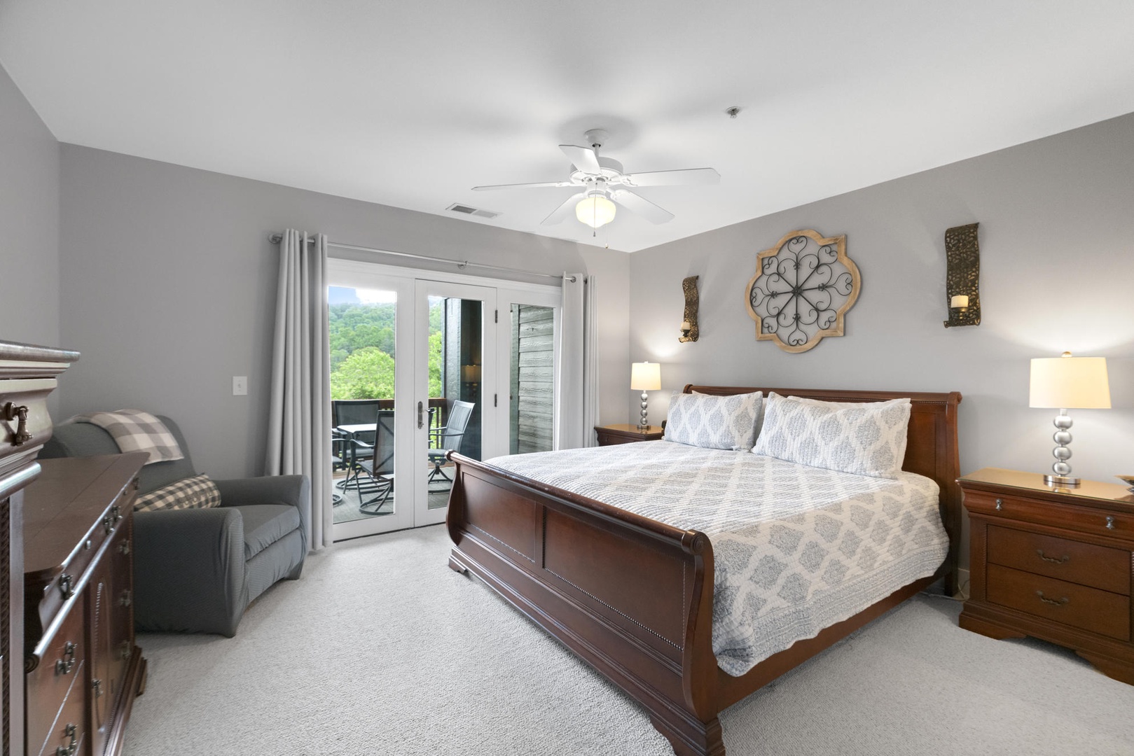Primary Bedroom--King Size Bed, TV, Access to Deck