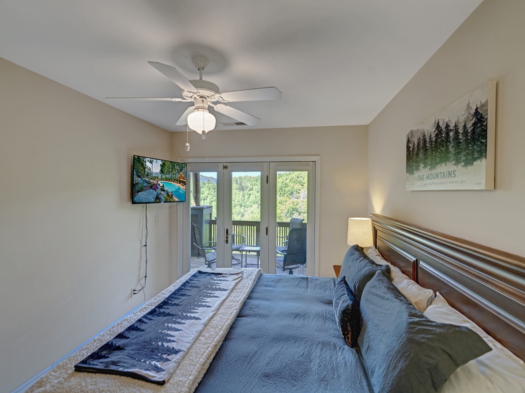 Primary Bedroom--- TV, Access to Deck