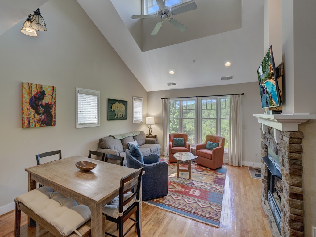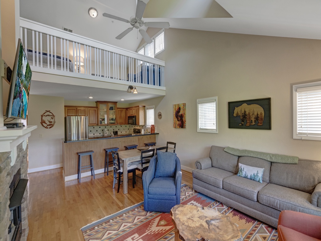 Description: Located in the beautiful development of Echota, this two-bedroom, two-bathroom top floor (upstairs) with loft condo is perfect for your next vacation. This condo is fully furnished with everything you would need for a long retreat or a short weekend getaway. The kitchen is well equipped to prepare meals and the living room is inviting with a gas log fireplace and mountain view. Curl up, get cozy and read a book, watch TV or take a nap…. the choice is yours! Guests of this unit have access to the deck from the living room or primary bedroom where they can breathe in fresh mountain air while gazing at the mountains and listening to the sounds of nature. Enjoy a short mountain getaway to relax or an extended stay and explore all the High Country has to offer.