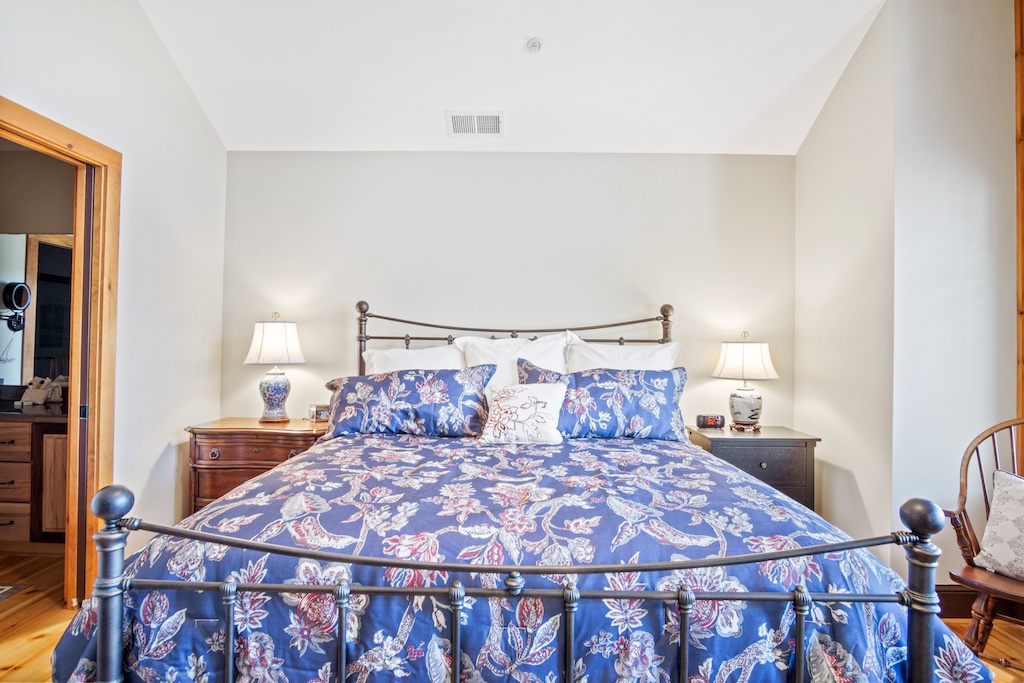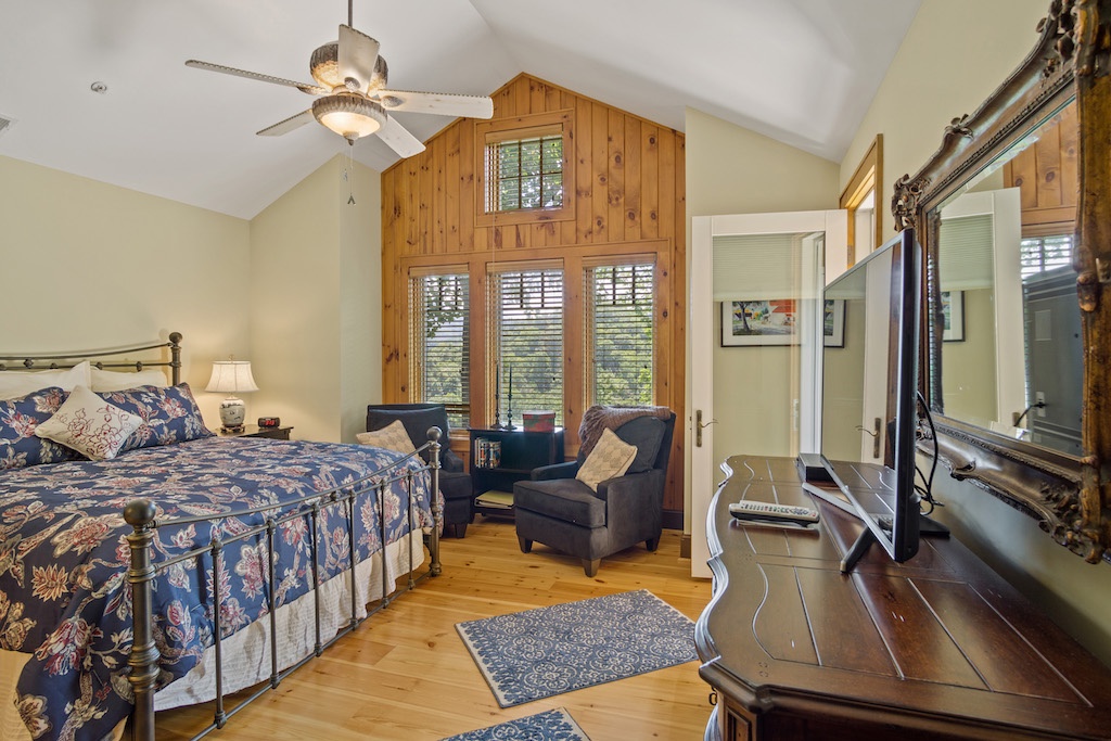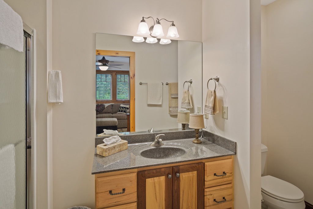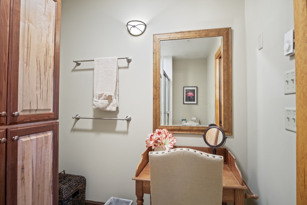 Description: The Grand Oaks floor plan features convenient single level living with 3 bedrooms and 3 bathrooms, elevator access, and a covered entry. The open floor concept has a spacious 1669 square feet with cathedral ceilings in the living and dining areas as well as the primary bedroom. Mountain views can be admired from the open kitchen, living and dining room areas as well as the primary bedroom. The kitchen boasts custom cabinetry and is equipped with everything to prepare a meal. Enjoy a meal at the dining room table, play cards or put a puzzle together. Cozy up in the living room in front of the gas log fireplace or enjoy your favorite movie. The choices are yours! The large 19 ft wide covered concrete deck is a place to gather with friends or enjoy a quiet afternoon enjoying the wonders of nature and the breathtaking mountain view. The spacious primary bedroom and bathroom suite offers a luxurious experience and access to the deck area as well as the living room. The guest bedrooms also have bathrooms offering privacy for each guest. Come for a short weekend or enjoy an extended stay and explore all the High Country has to offer. This condo is on the top floor (upstairs, no condos above) with an elevator. In case of power outages or elevator equipment malfunctions, the condo will be stair access only.