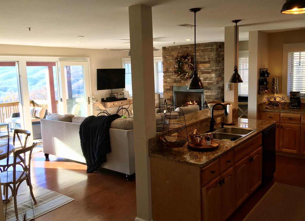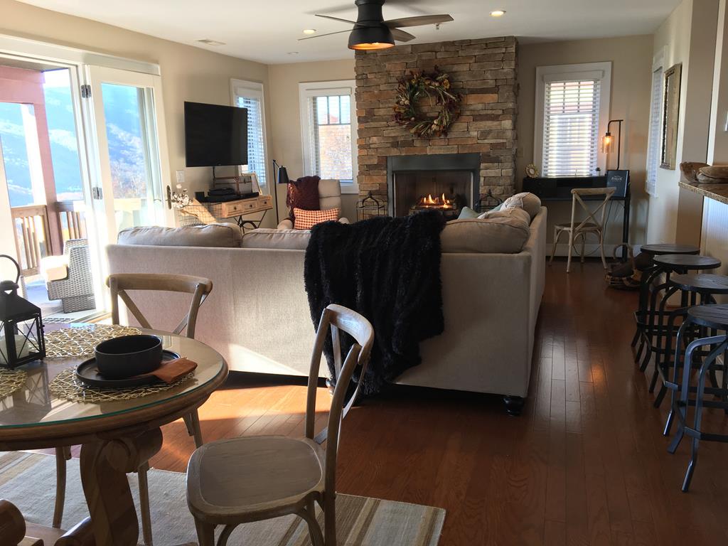 Description: The Grand Oaks floor plan features convenient single level living with 3 bedrooms and 3 bathrooms, elevator access, and a covered entry. The open floor concept has a spacious 1669 square feet. Mountain views can be admired from the open kitchen, living and dining room areas as well as the primary bedroom. The kitchen boasts custom cabinetry and is equipped with everything to prepare a meal. Enjoy a meal at the dining room table, play cards or put a puzzle together. Cozy up in the living room in front of the gas log fireplace or enjoy your favorite movie. The choices are yours! The large 19 ft wide covered concrete deck is a place to gather with friends or enjoy a quiet afternoon enjoying the wonders of nature and the breathtaking mountain view. The spacious primary bedroom and bathroom suite offers a luxurious experience and access to the deck area as well as the living room. The guest bedrooms also have bathrooms offering privacy for each guest. Come for a short weekend or enjoy an extended stay and explore all the High Country has to offer. This condo is on the bottom floor (downstairs) with an elevator. In case of power outages or elevator equipment malfunctions, the condo will be stair access only.
