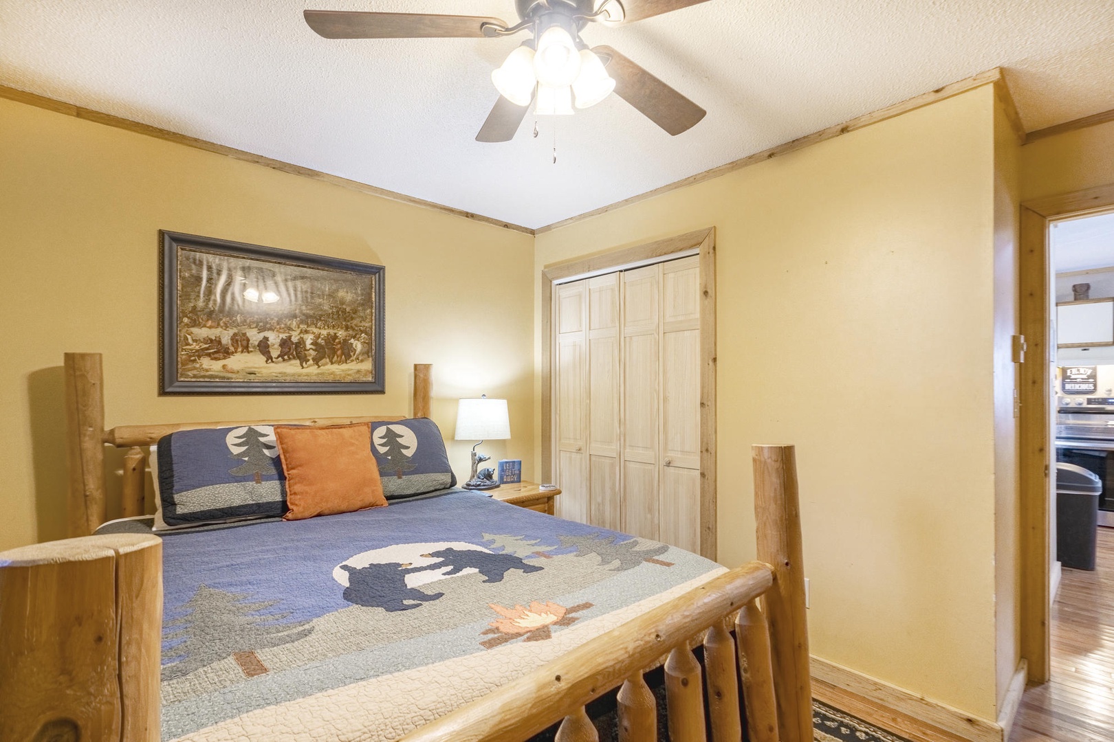Bed Configuration: Queen (Primary Bedroom, Main Floor), Queen (Guest Bedroom, Upstairs), Two Twins (Guest Bedroom, Upstairs), Sleeps 6