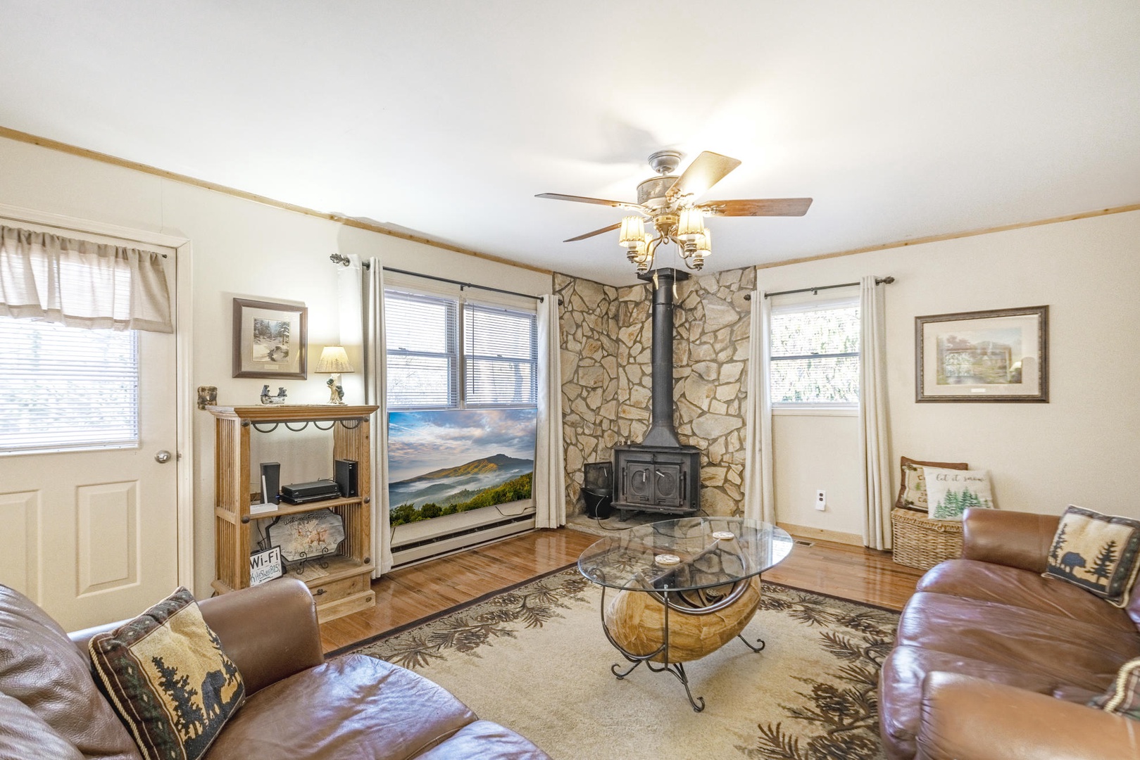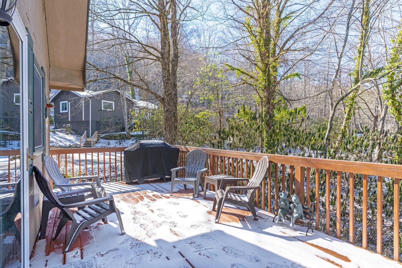 Description: Grandfather's Gem Getaway offers a cozy and welcoming retreat in the scenic heart of the High Country, located between Boone and Banner Elk. This home is nestled in the serene Mill Ridge area, surrounded by rhododendrons, yet within easy walking distance of the outdoor pool. You can enjoy morning coffee on the deck, relax by the outdoor table in the lush rhododendron, or experience the warmth of the wood stove in winter. The home also benefits from cool mountain breezes in the summer.