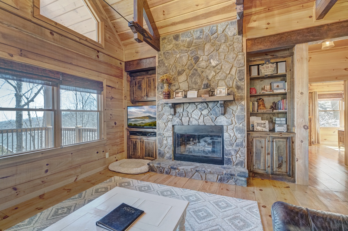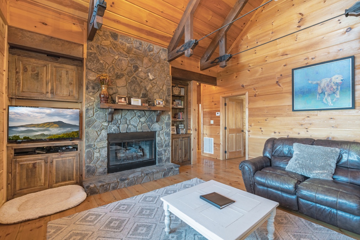 Living Room--- Rock Gas Log Fireplace, Large TV
