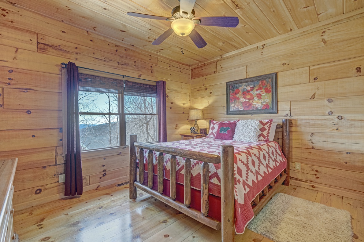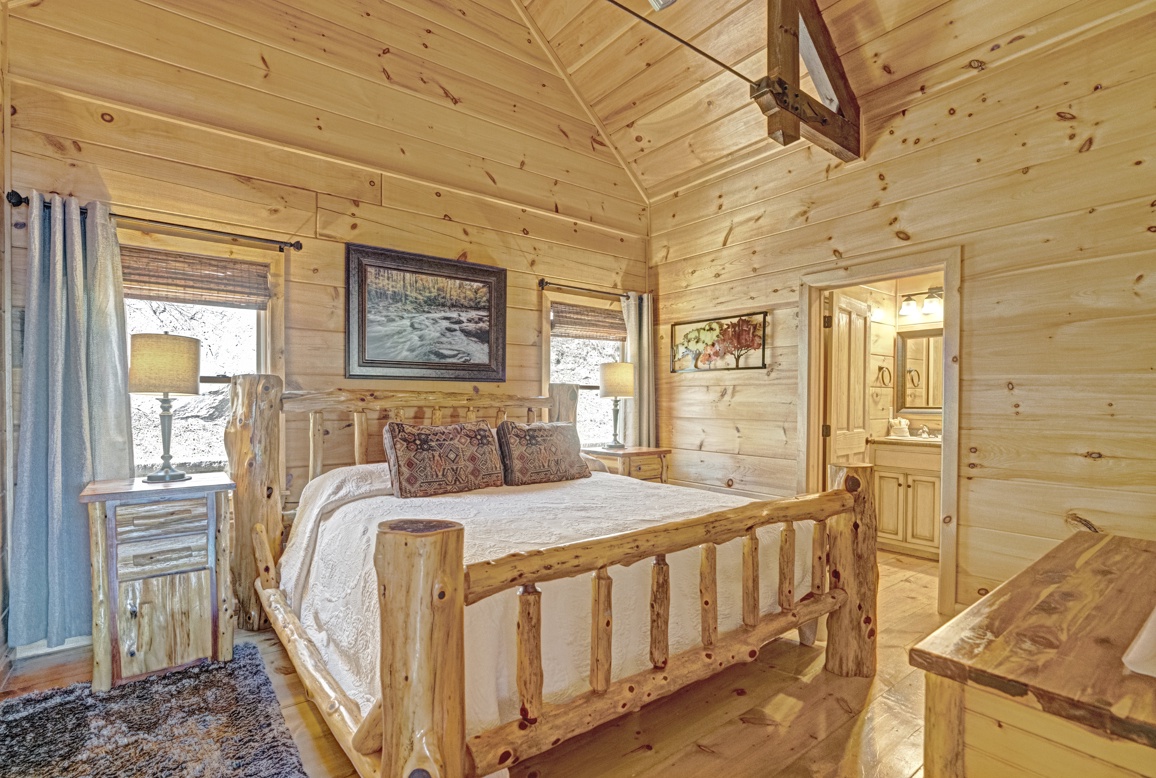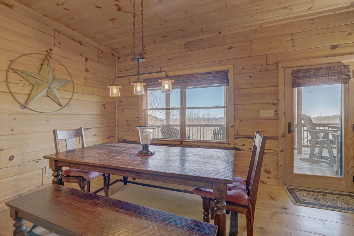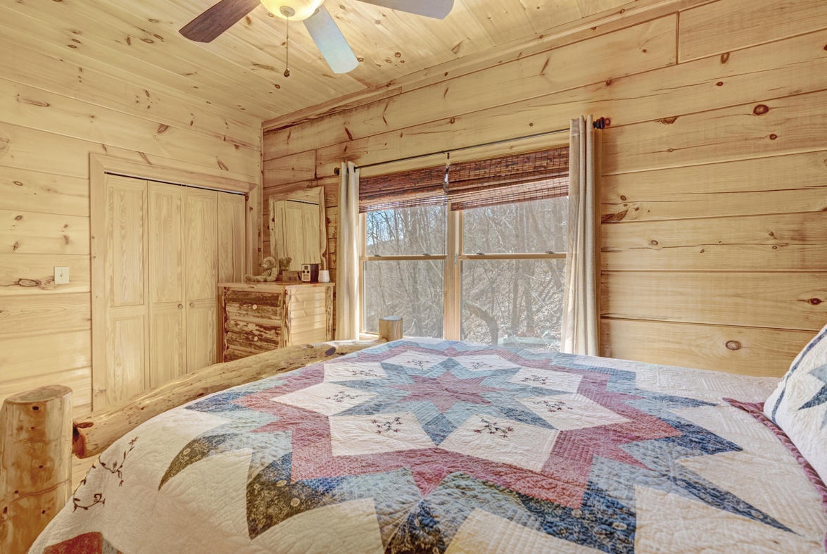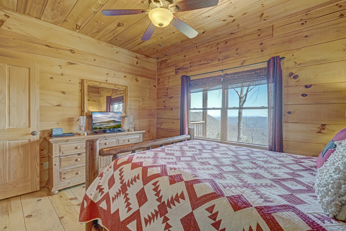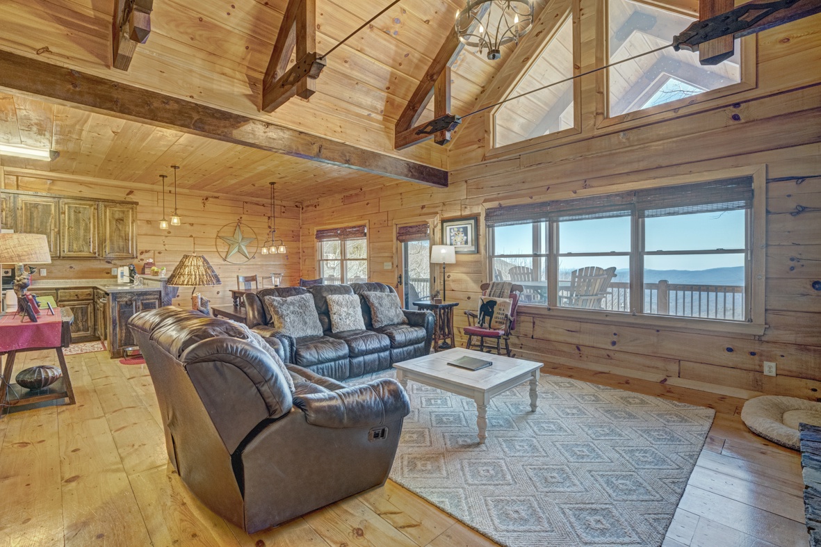 Description: Escape to the tranquil High Country mountains and discover the charm of Harley's Hideaway, a snug log cabin. Nestled amidst nature, this cabin accommodates up to 8 guests across 3 bedrooms and 2 bathrooms, all conveniently situated on a single level. Step onto the deck and be greeted by refreshing mountain breezes and breathtaking views, perfect for bonding with your loved ones. Inside, the open floor plan beckons with warm hardwood floors, a charming tongue and groove ceiling, and plush furnishings, creating an inviting ambiance. The fully-equipped kitchen ensures culinary convenience, while the spacious dining area invites shared meals and laughter. Unwind by the cozy gas log fireplace, where HD television and Blu-Ray movies await your enjoyment. The primary bedroom boasts a luxurious king-size bed and an en-suite bathroom. Two additional bedrooms offer queen-size beds and two twin roll-away beds (linens not included), ensuring ample sleeping arrangements. Modern amenities such as central heating and air conditioning, a washer and dryer, and wireless internet enhance your comfort. Plus, your furry family member is welcome to join, with pet fees applicable (maximum of 2 dogs). Escape the hustle and bustle and indulge in the tranquility of Harley's Hideaway.