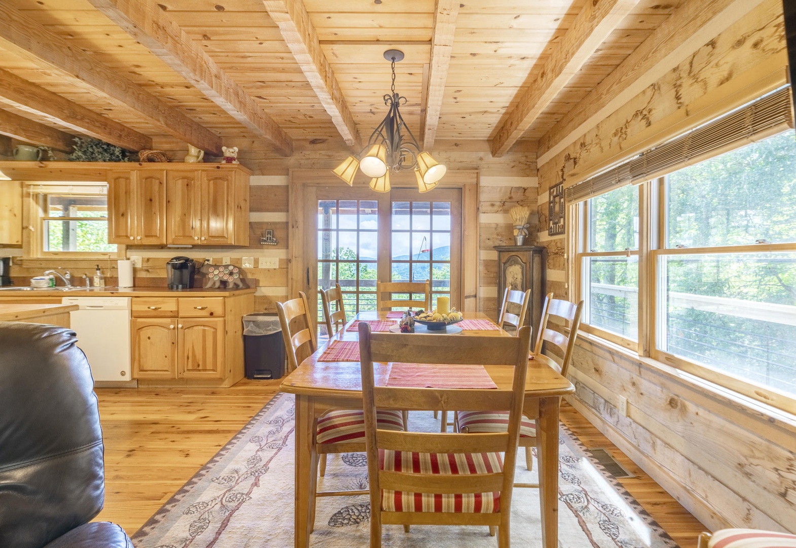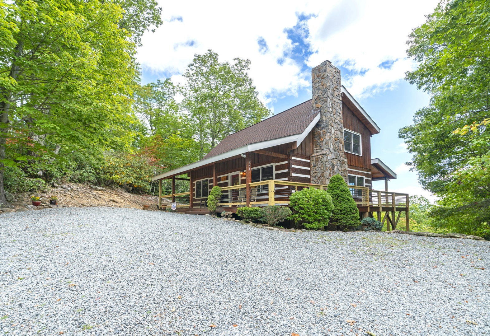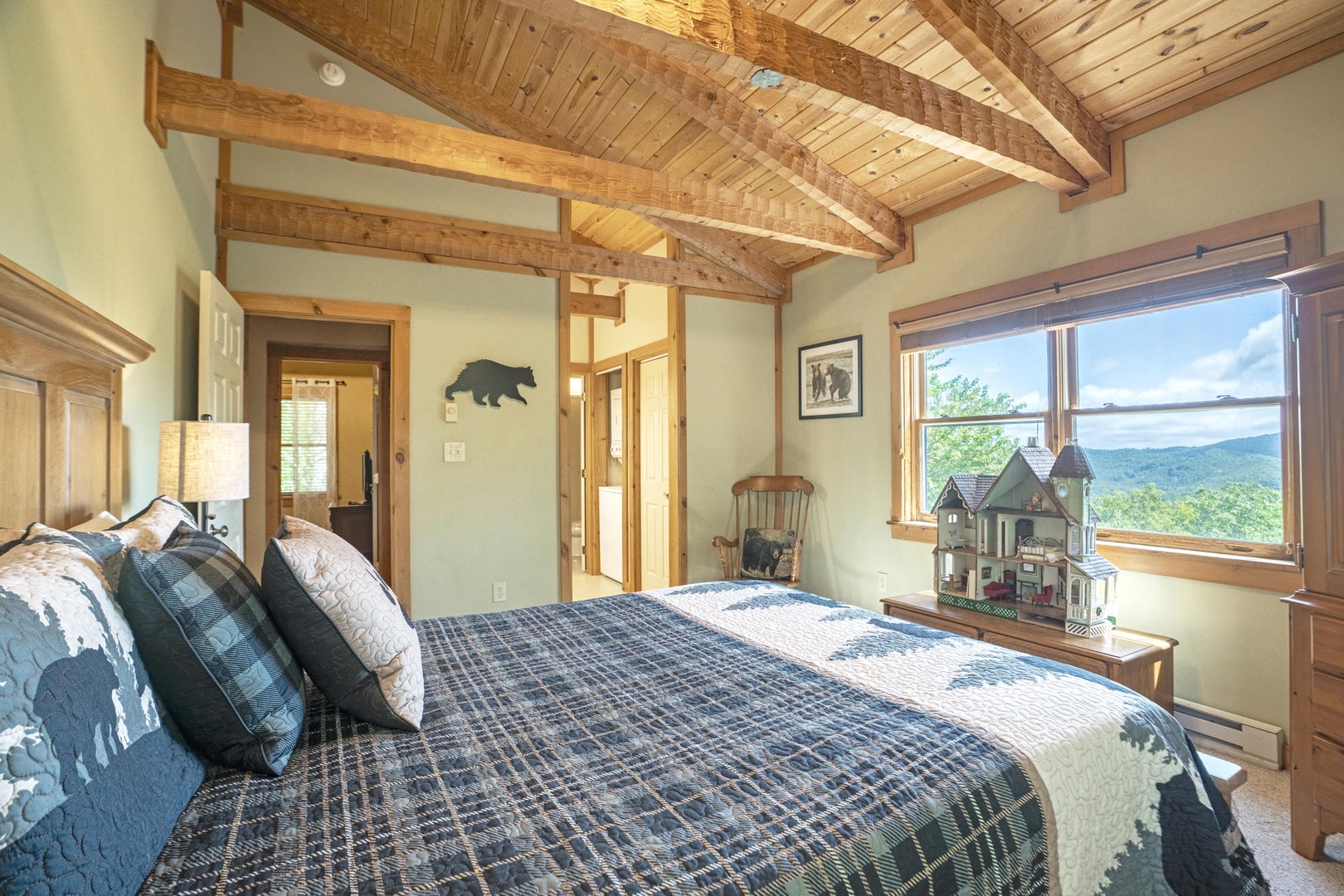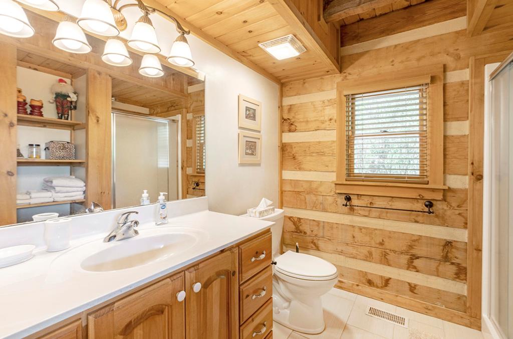 Description: Nestled in the serene Lakes Community, La Casita invites you to unwind in its charming ambiance while offering breathtaking vistas of Grandfather Mountain from its elevated position. This inviting log cabin boasts three bedrooms and two baths, providing a cozy haven for up to six guests. Step inside to discover a thoughtfully designed interior, where rustic charm meets modern convenience. The main floor features a spacious primary bedroom with a luxurious king bed and an indulgent whirlpool tub in the attached bath. Upstairs, two guest rooms await, one adorned with a plush queen bed, the second room with a twin trundle (2 twins) and a shared well-appointed Jack and Jill bathroom with separate dressing areas. Throughout the cabin, comfort is paramount. Sink into the plush furnishings of the living room, illuminated by the warm glow of a gas fireplace with the flick of a switch. Prepare delicious meals in the fully equipped kitchen, complete with new appliances, before dining on the covered wrap-around deck, equipped with a gas grill and rocking chairs for leisurely evenings outdoors. For entertainment, three cable TVs are provided, ensuring everyone can find their favorite show or movie. Stay cool in the summer months with central air conditioning and ceiling fans in every room, while a washer and dryer offer added convenience during your stay. Whether you're admiring the mountain views from the deck or hiking on nearby trails, La Casita promises an unforgettable retreat where nature and luxury converge.