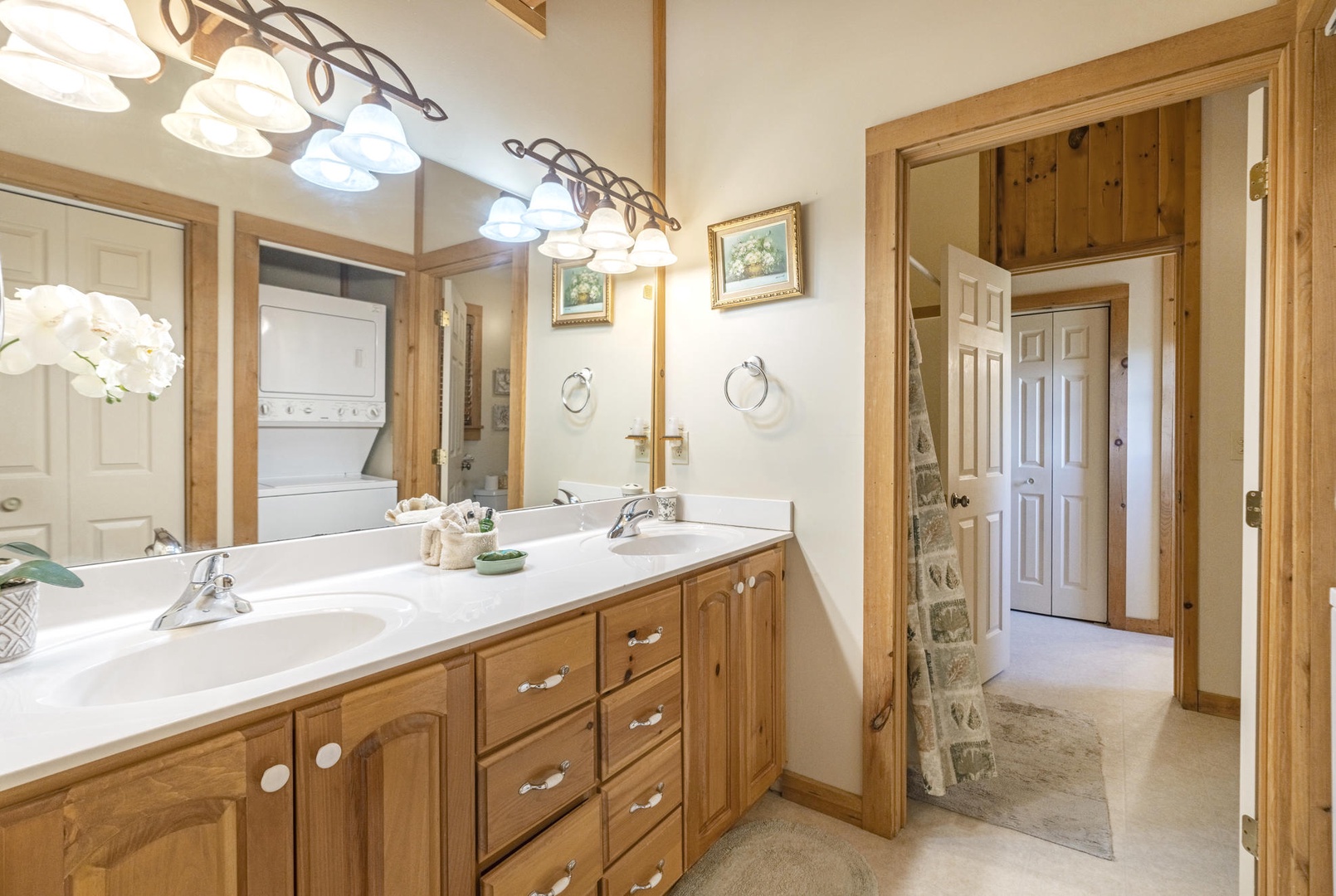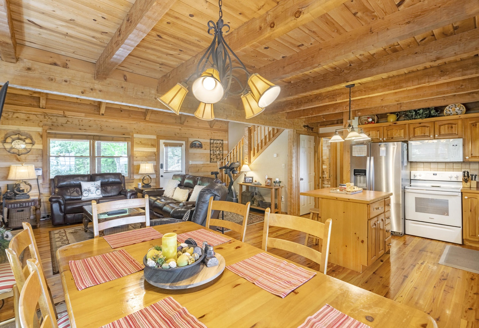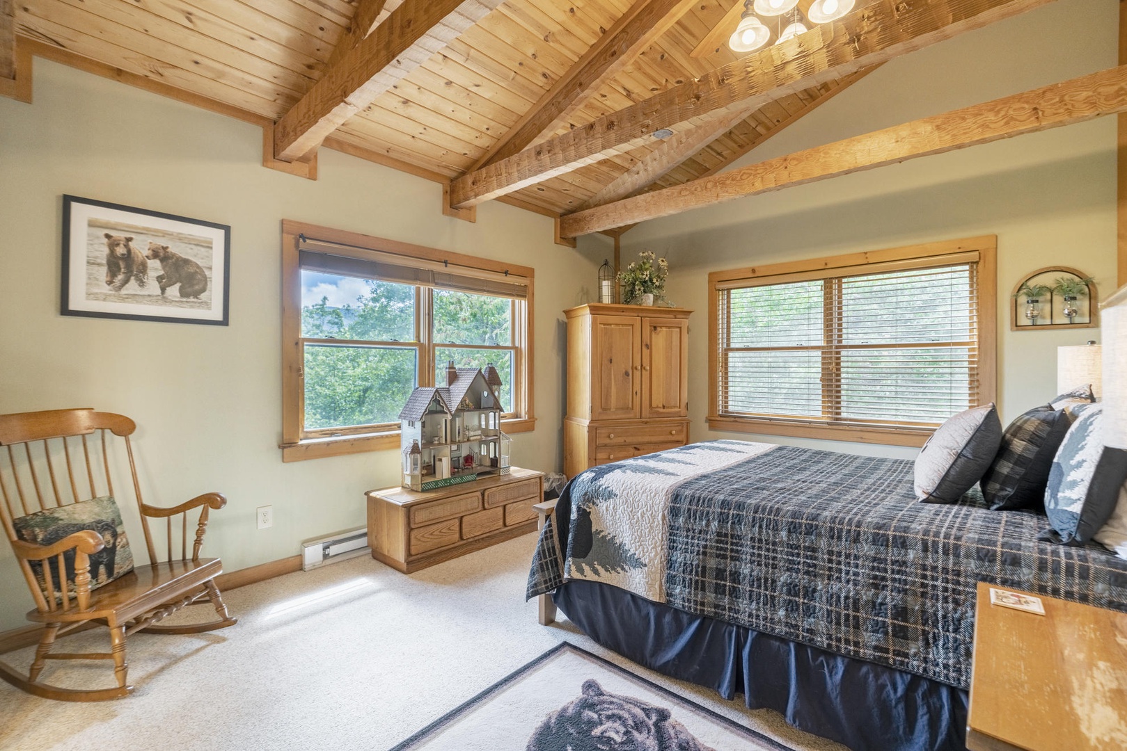 Bed Configuration: King (Primary Bedroom, Main Floor), Queen (Guest Bedroom, Upstairs), Twin Trundle (Guest Bedroom, Upstairs) Sleeps 6