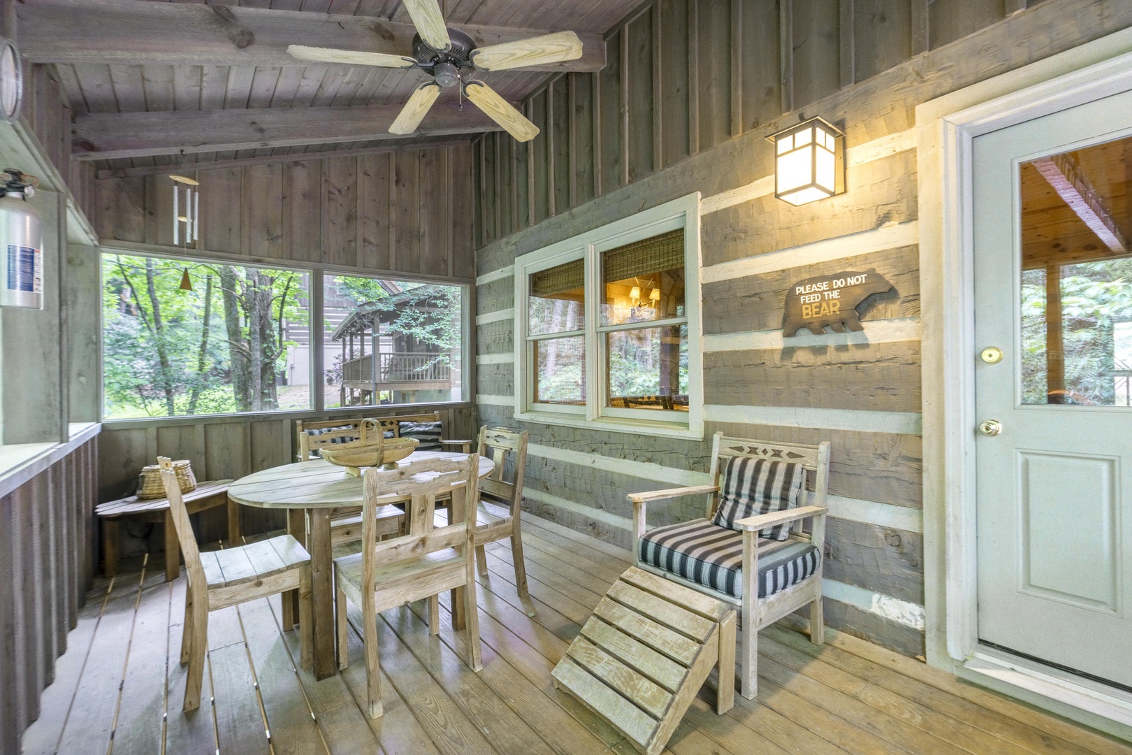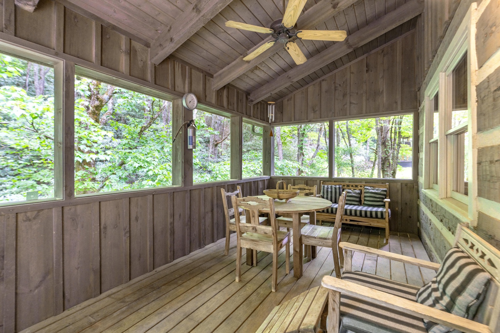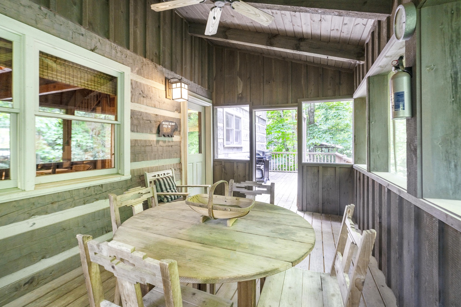 Back screened porch very helpful. Great view of woods and blooming mountain laurel. Great stay overall and spent a lot of the time at this cabin. Worked out great. Thanks.
