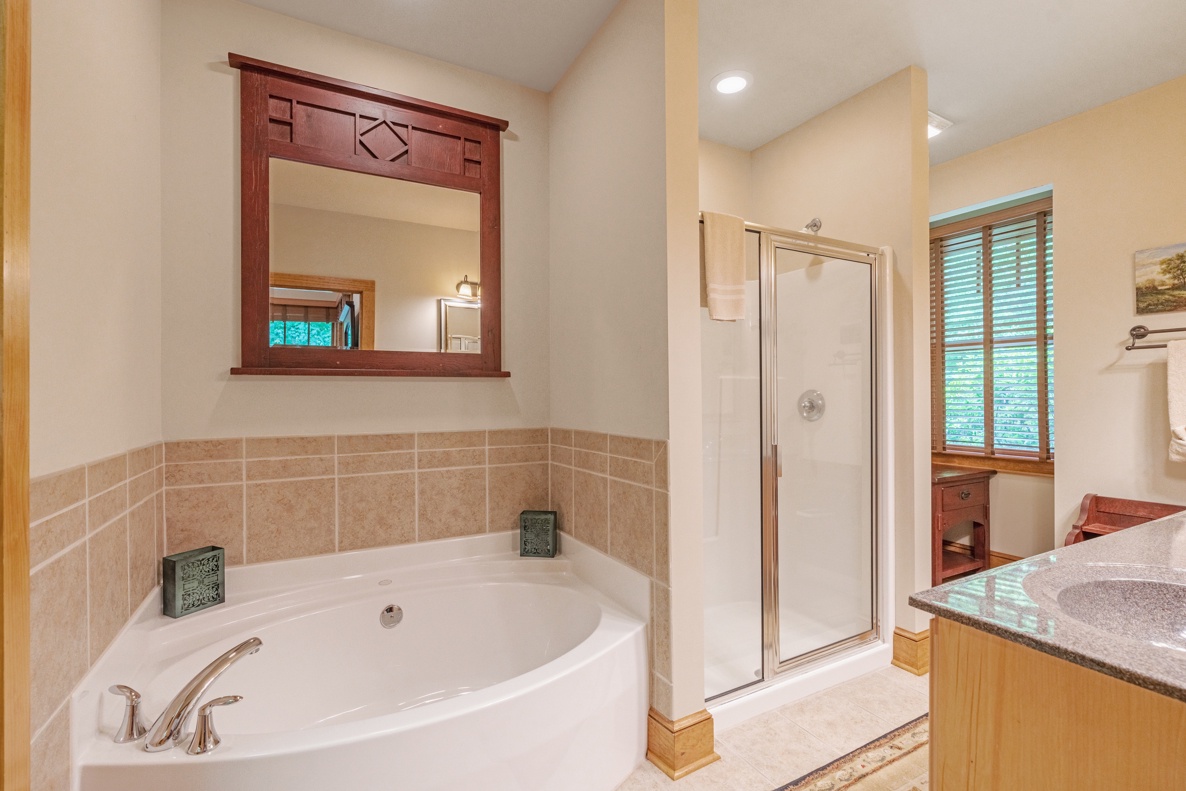 Primary Bathroom---Large Soaking Tub, Tile Shower