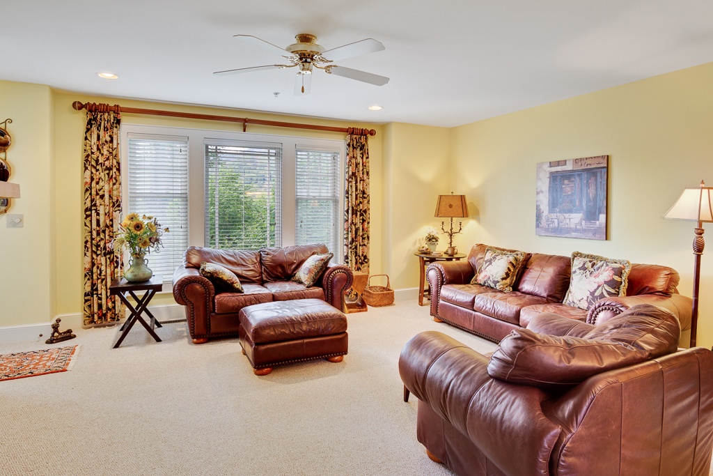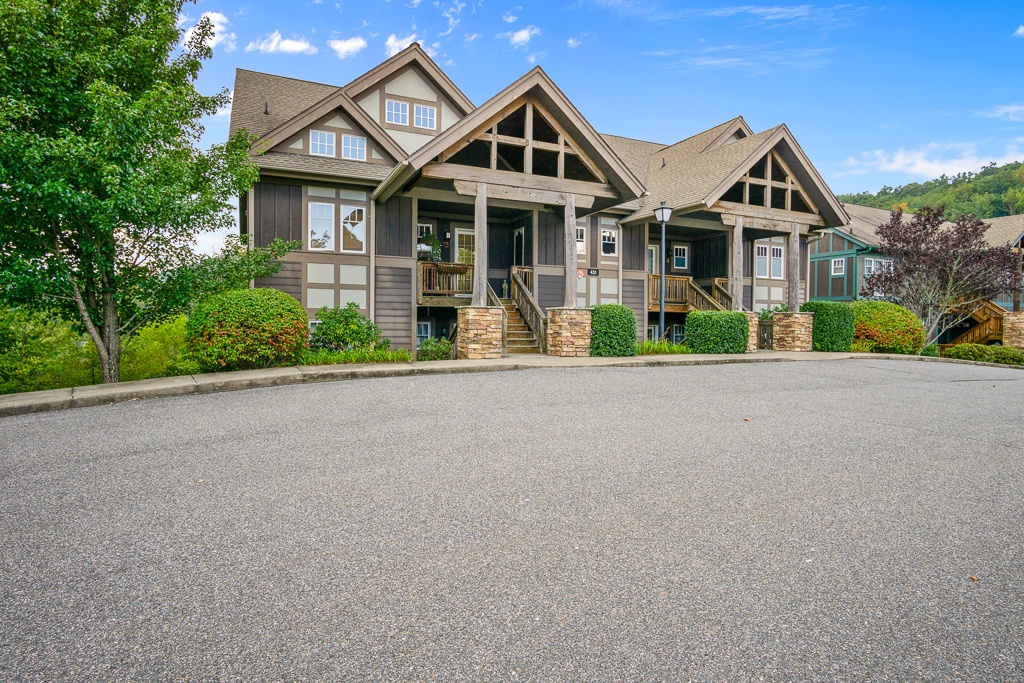 Description: Located in the resort of Echota, this Timber floor plan condo features two level living with two living spaces. These spacious condos are great for two families or families with children, each with their own space to enjoy. The main floor features a fully equipped kitchen, inviting living room with gas log fireplace, primary bedroom, bathroom and ½ bath. Access to the covered deck is provided from the living room or the primary bedroom as well as the mountain views. The primary bedroom is spacious with the primary bathroom attached. Located downstairs is another living room area as well as the guest bedroom, bathroom, and laundry room. There is also access to the covered deck downstairs through the living room or guest bedroom. This condo is downstairs with stair access only (7 stairs total).