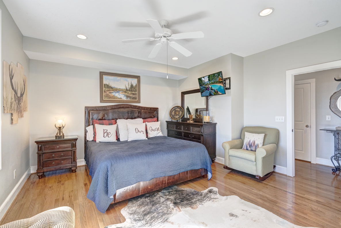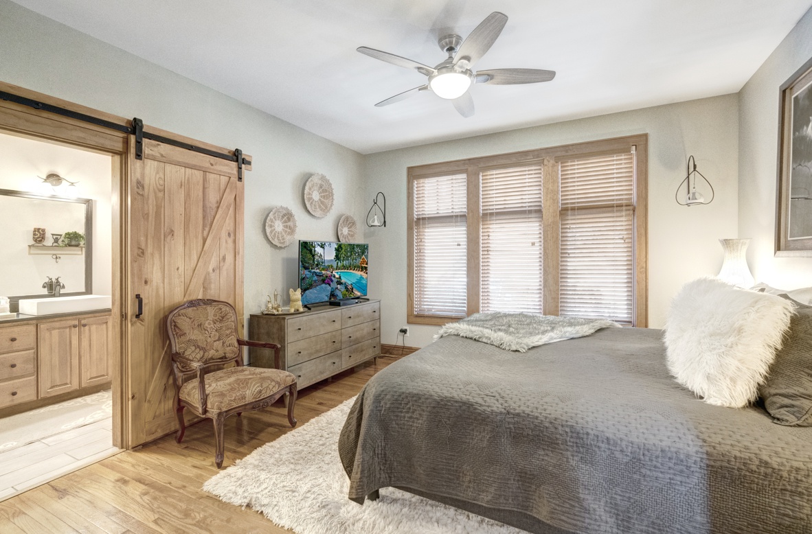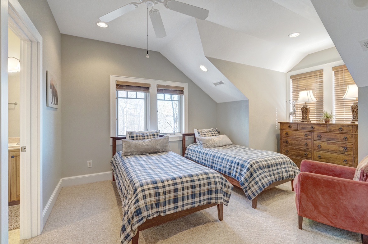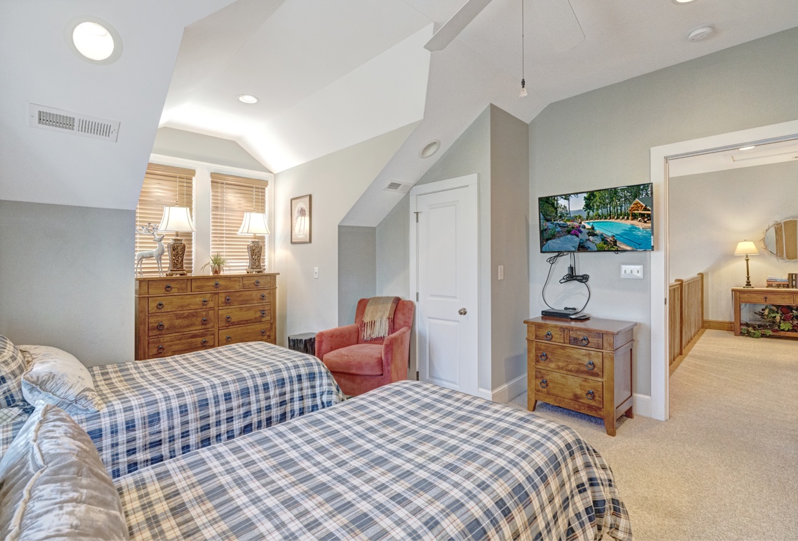 Beautifully furnished with all the comforts of home, this townhome features a main-level primary bedroom with a King size bed, flat-screen TV, private bath/dressing area, and a cozy sitting area for your morning coffee. Upstairs, two additional bedrooms each boast 2 twin beds, TVs, and a separate bathroom, providing privacy when needed.