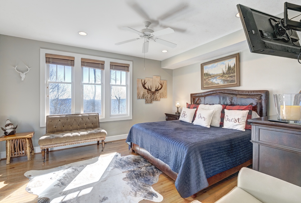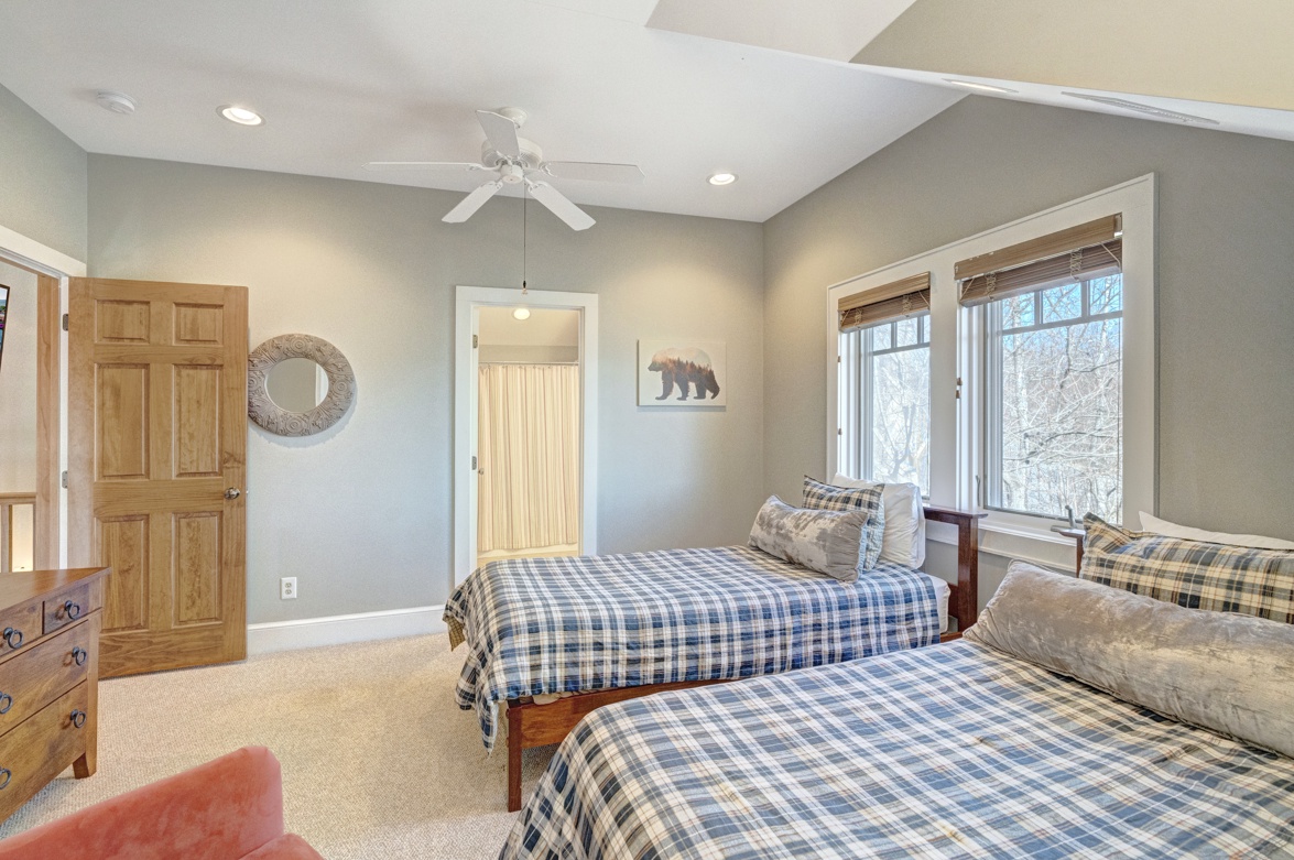 Bed Configuration: King (Primary Bedroom, Main Floor), 2 Twins (Guest Bedroom Upstairs), 2 Twins (Guest Bedroom Upstairs), King (Guest Bedroom, Downstairs), Futon (Rec Room Downstairs) Sleeps 9