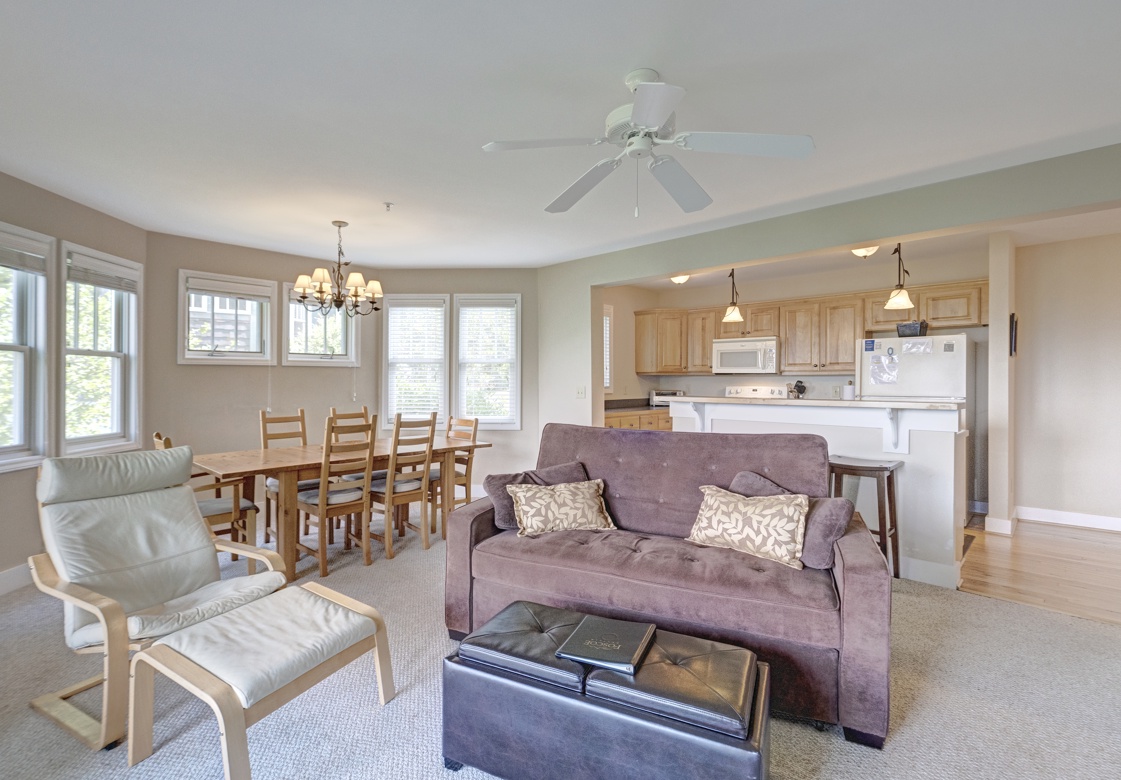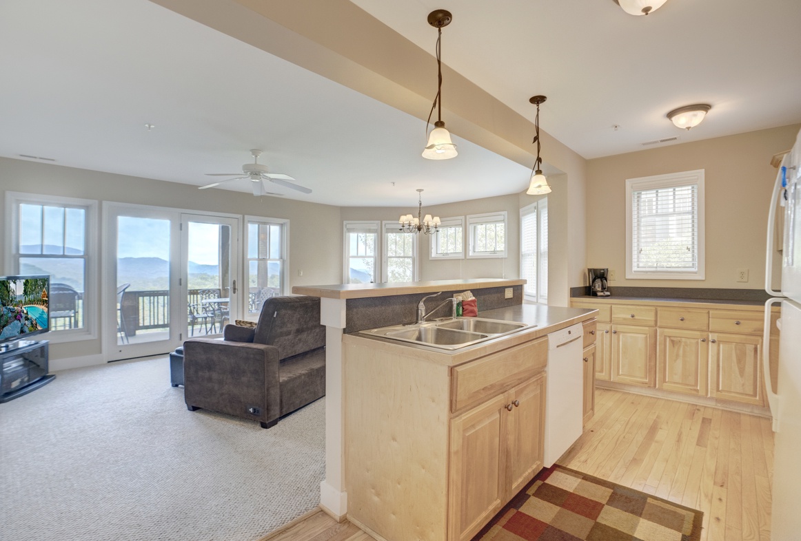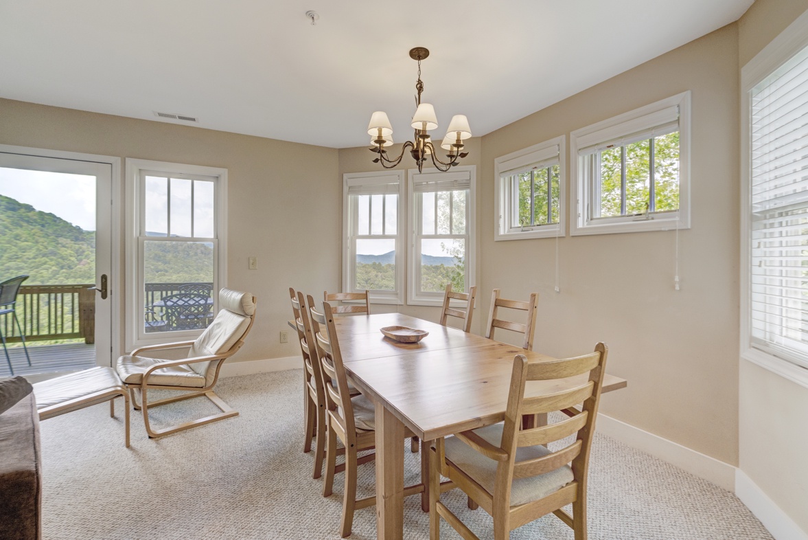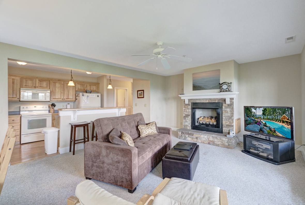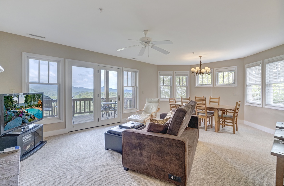 Description: Located in the beautiful development of Echota on the Ridge, this two-bedroom, two-bathroom downstairs (stair access only) condo is perfect for your next vacation. This condo is fully furnished with everything you would need for a long retreat or a short weekend getaway. The kitchen is well equipped to prepare meals and the living room is inviting with a gas log fireplace and amazing mountain views. Curl up, get cozy and read a book, watch TV or take a nap…. the choice is yours! Guests of this unit have access to the deck from the living room or primary bedroom where they can breathe in fresh mountain air while gazing at the mountains and listening to the sounds of nature. Enjoy a short mountain getaway to relax or an extended stay and explore all the High Country has to offer.