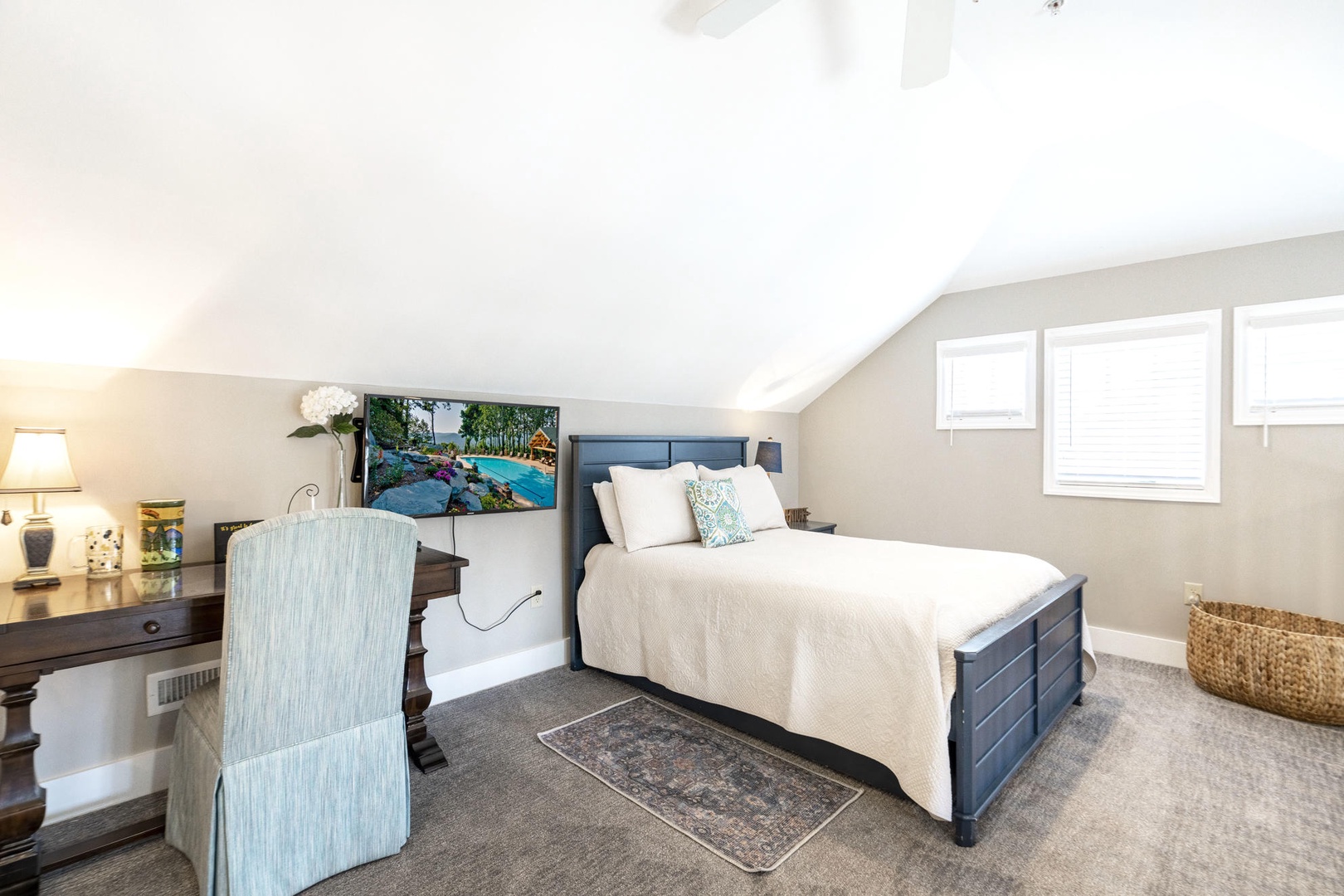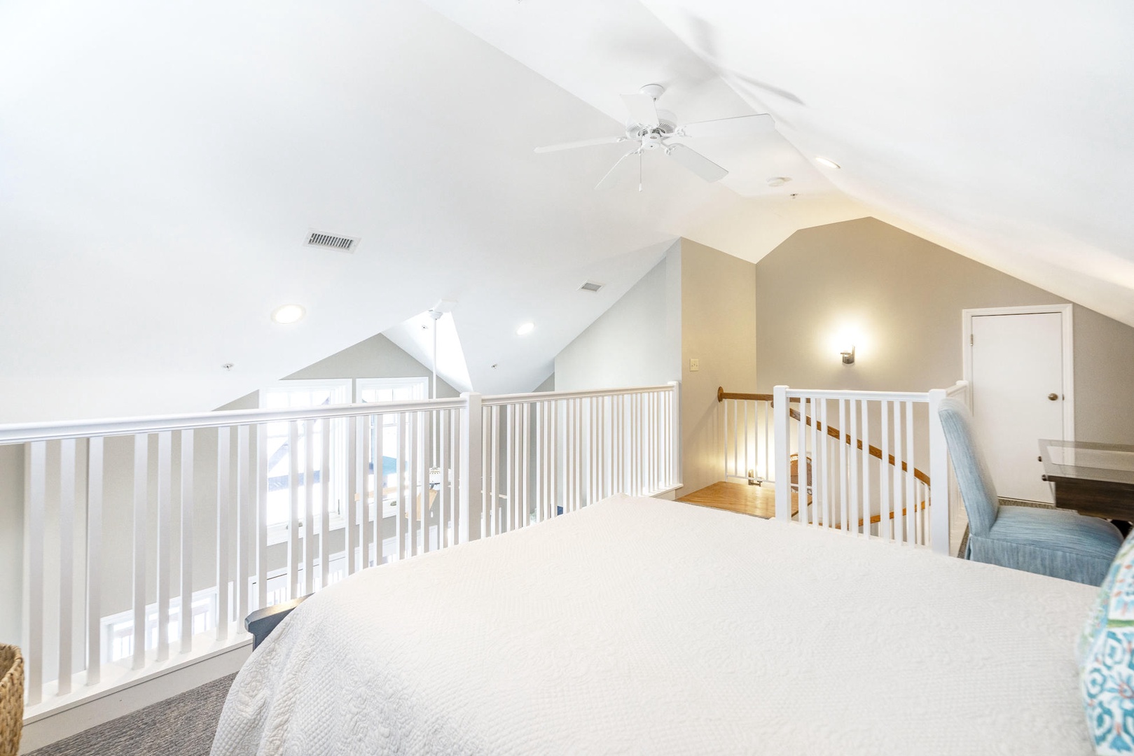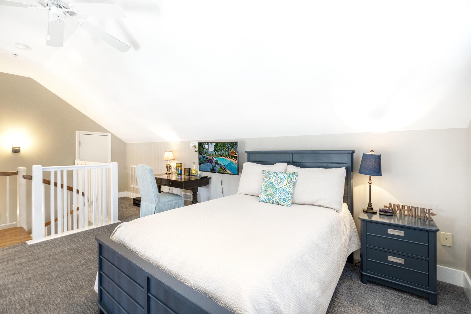 Loft Area---Queen Size Bed, Television, Desk