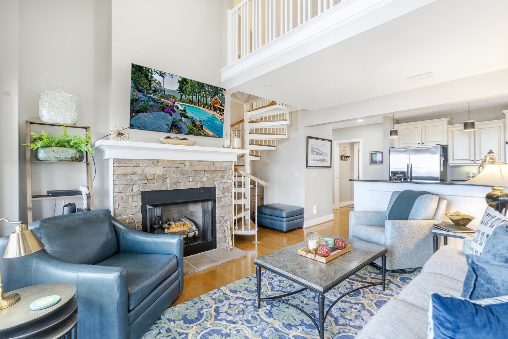 Description: Located in the beautiful development of Echota on the Ridge, this two-bedroom, two-bathroom top floor (upstairs) with loft condo is perfect for your next vacation. This condo is fully furnished with everything you would need for a long retreat or a short weekend getaway. The kitchen is well equipped to prepare meals and the living room is inviting with a gas log fireplace and amazing mountain views. Curl up, get cozy and read a book, watch TV or take a nap…. the choice is yours! Guests of this unit have access to the deck from the living room or primary bedroom where they can breathe in fresh mountain air while gazing at the mountains and listening to the sounds of nature. Enjoy a short mountain getaway to relax or an extended stay and explore all the High Country has to offer.