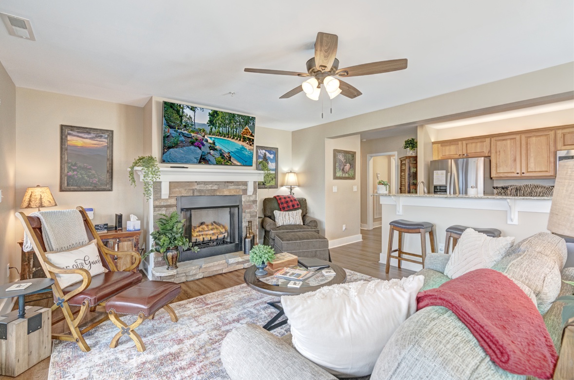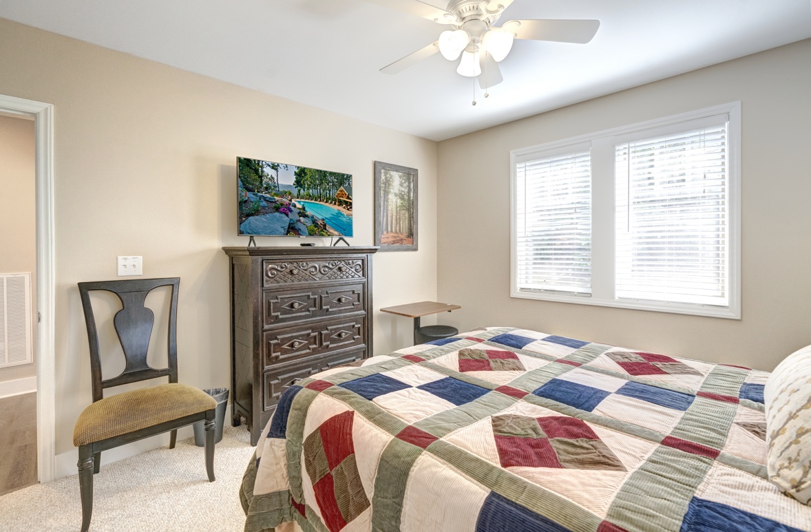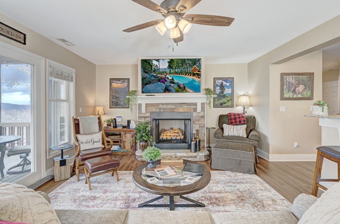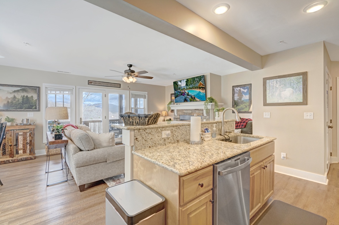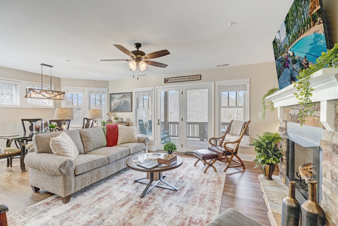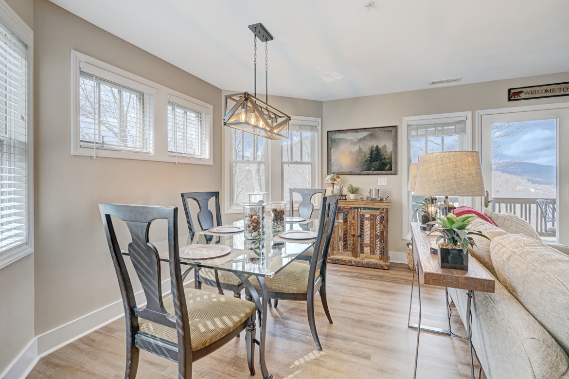 Description: Located in the beautiful development of Echota on the Ridge, this two-bedroom, two-bathroom downstairs (stair access only) condo is perfect for your next vacation. This condo is fully furnished with everything you would need for a long retreat or a short weekend getaway. The kitchen is well equipped to prepare meals and the living room is inviting with a gas log fireplace and amazing mountain views. Curl up, get cozy and read a book, watch TV or take a nap…. the choice is yours! Guests of this unit have access to the deck from the living room or primary bedroom where they can breathe in fresh mountain air while gazing at the mountains and listening to the sounds of nature. Enjoy a short mountain getaway to relax or an extended stay and explore all the High Country has to offer.