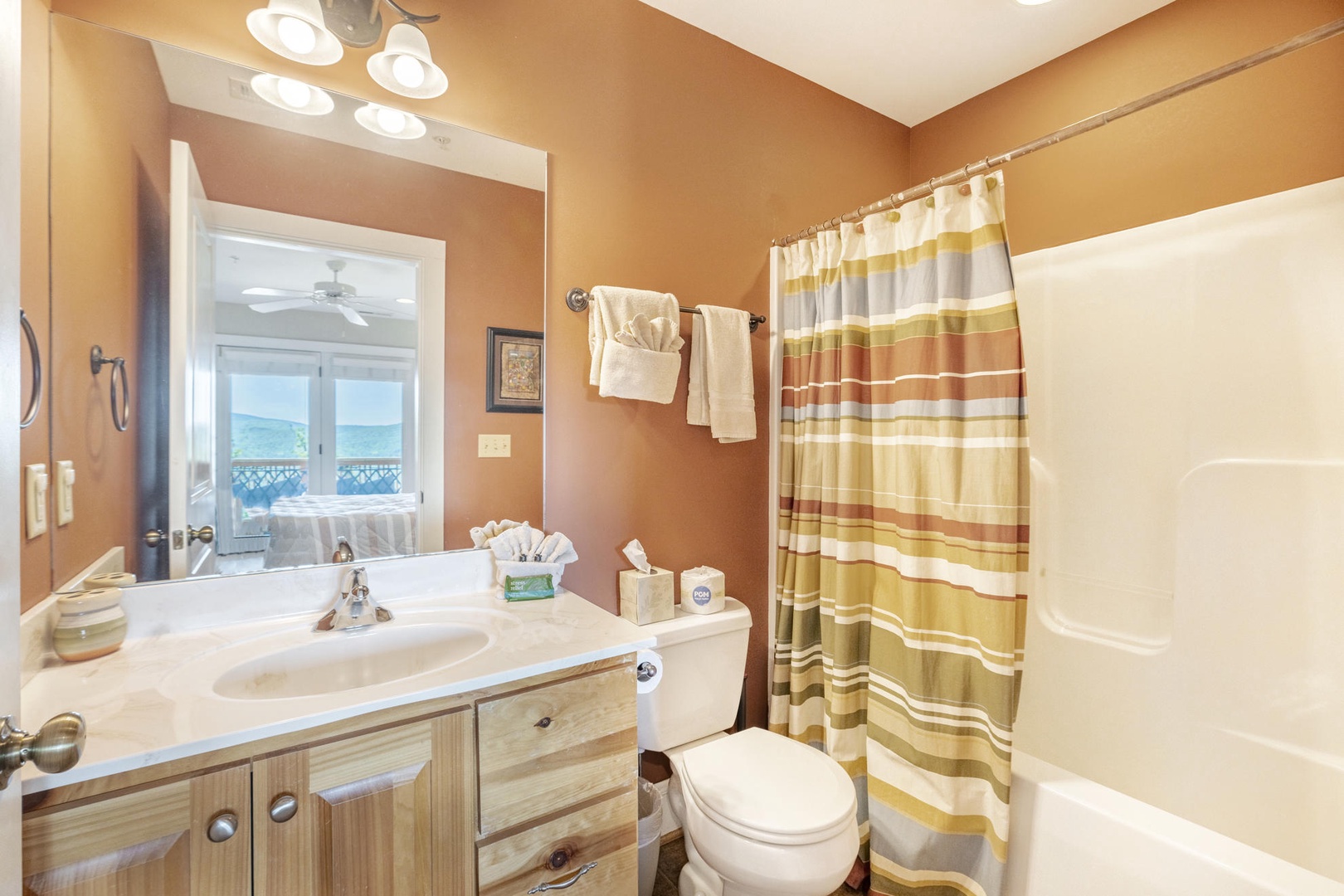 Description: Situated atop a mountain, at Echota on the Ridge, is this lovely 3-bedroom, 3.5-bathroom split-level condo (stair access only). With two levels of living space and two decks to enjoy the fresh mountain air and mountain view, the layout of this condo is one of its greatest features. The main floor features the fully stocked kitchen, living room with cozy gas log fireplace, primary bedroom and bathroom (double sinks, large soaking tub, shower stall) and half bath. The primary bedroom is spacious and inviting with the mountain view and access to the deck. The two other bedrooms and bathrooms are located downstairs as well as another deck to enjoy nature and fresh mountain air.