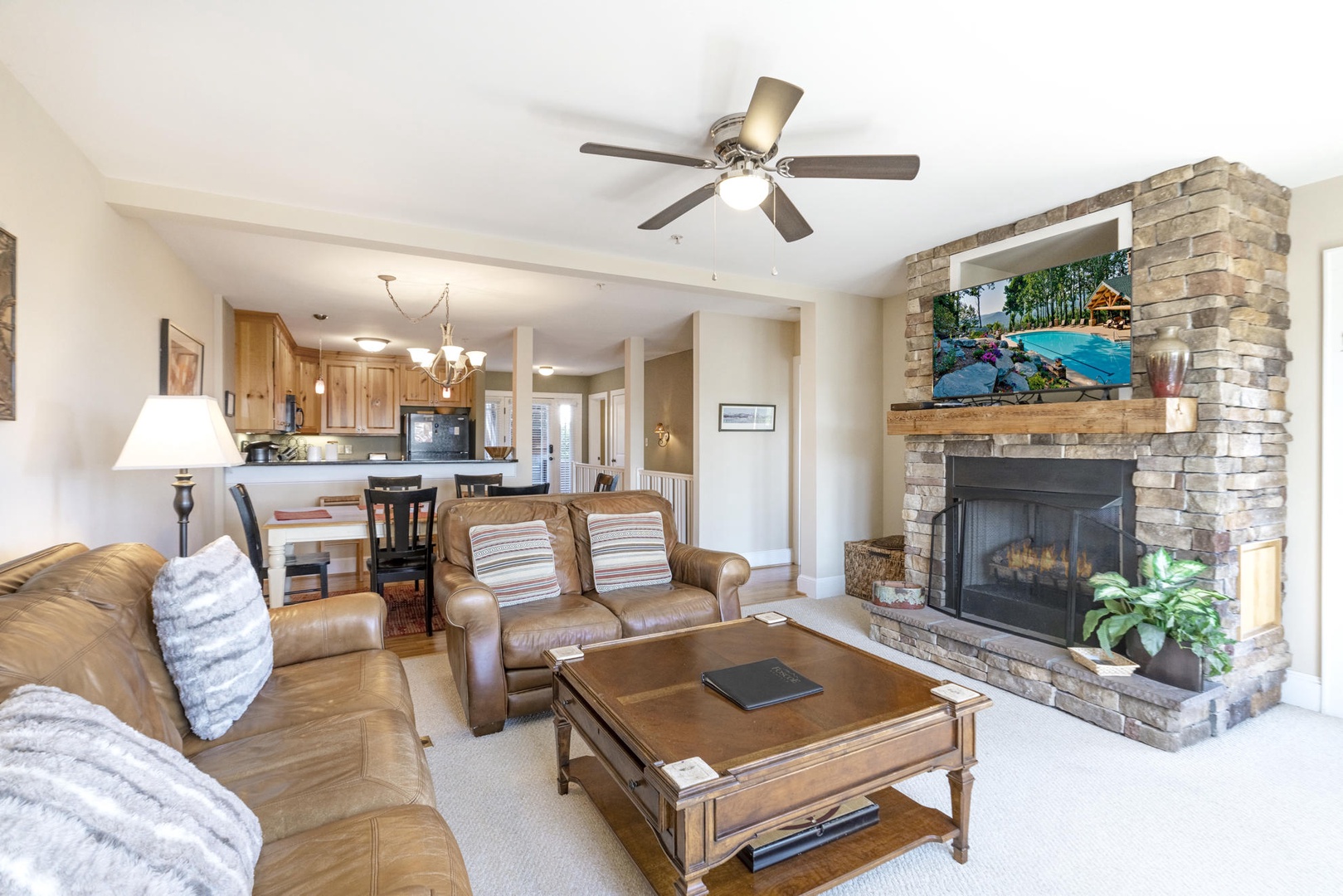 Living Room--- Cozy Fireplace, TV, Mountain View