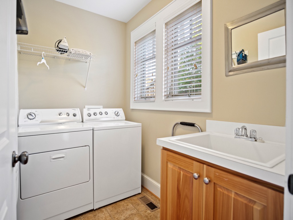 Bed Configuration: King (Primary Bedroom, Main Floor), Queen (Guest Bedroom, Downstairs), Twin Bunk Bed and Sleeper Sofa (Downstairs), Sleeps 8