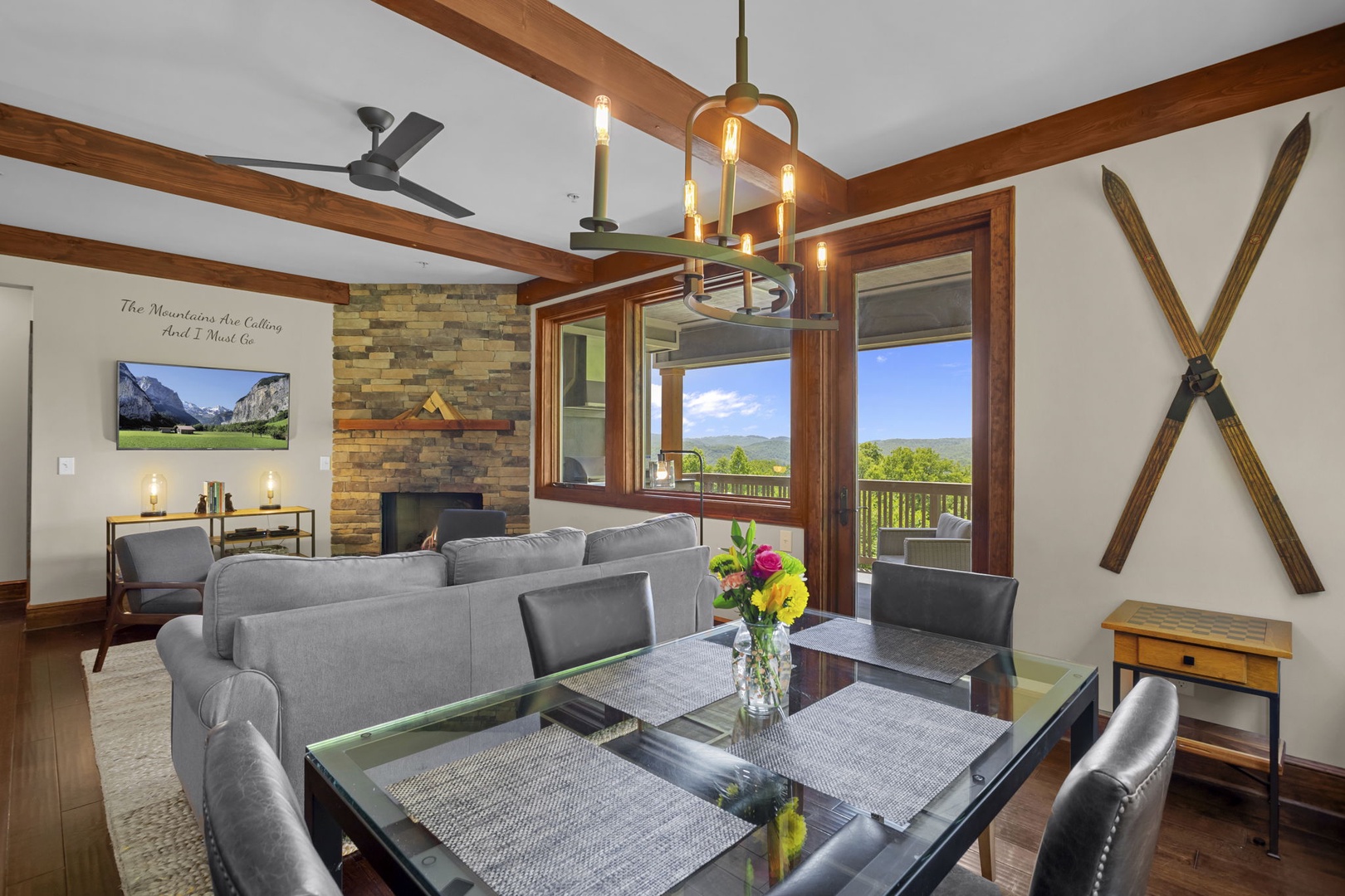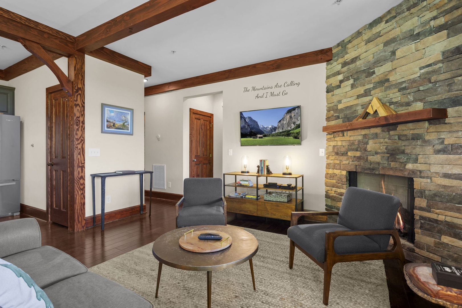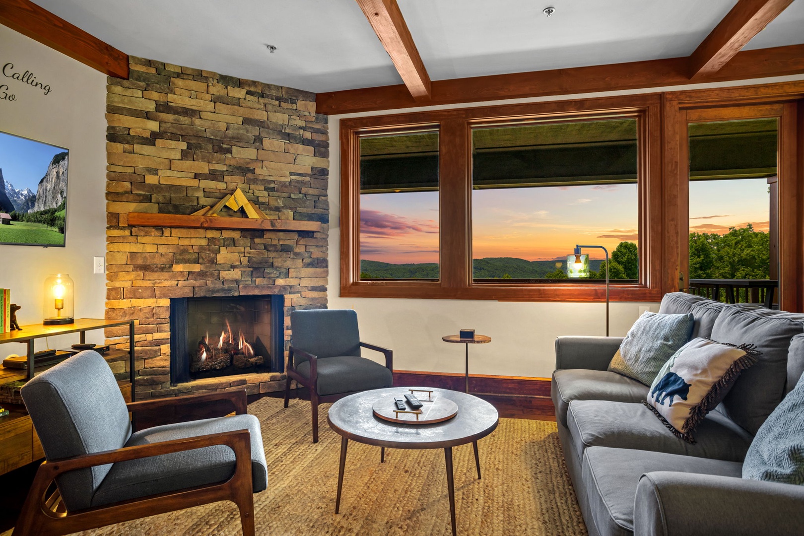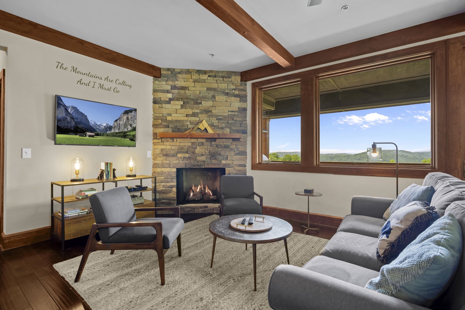 Living Room--- Mountain View, TV, Gas Logs
